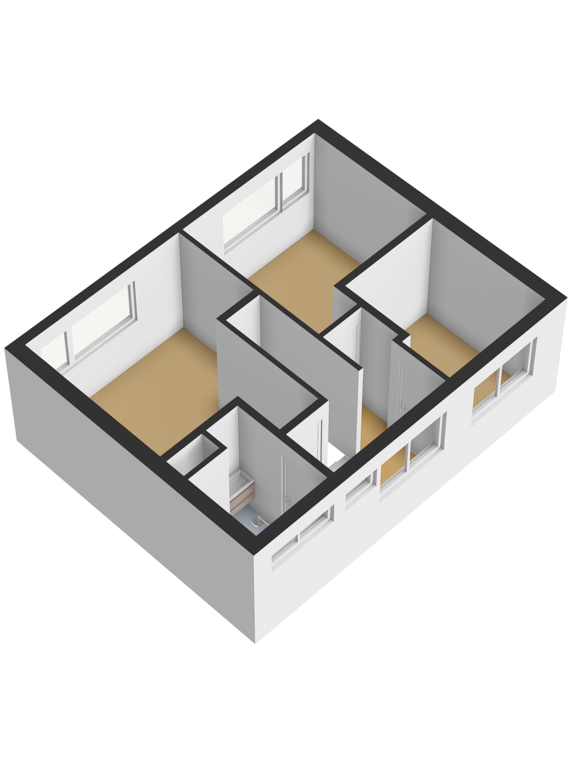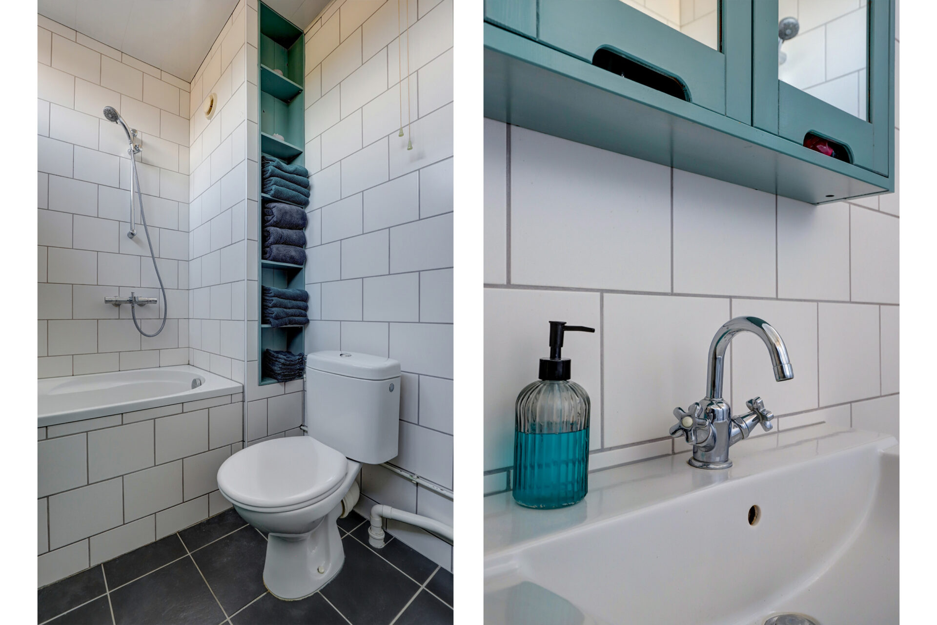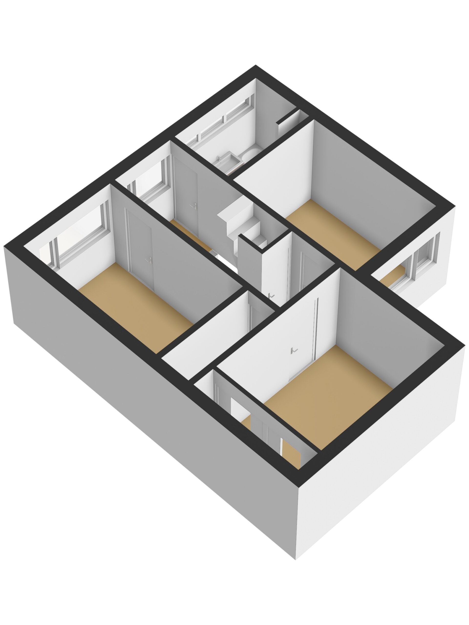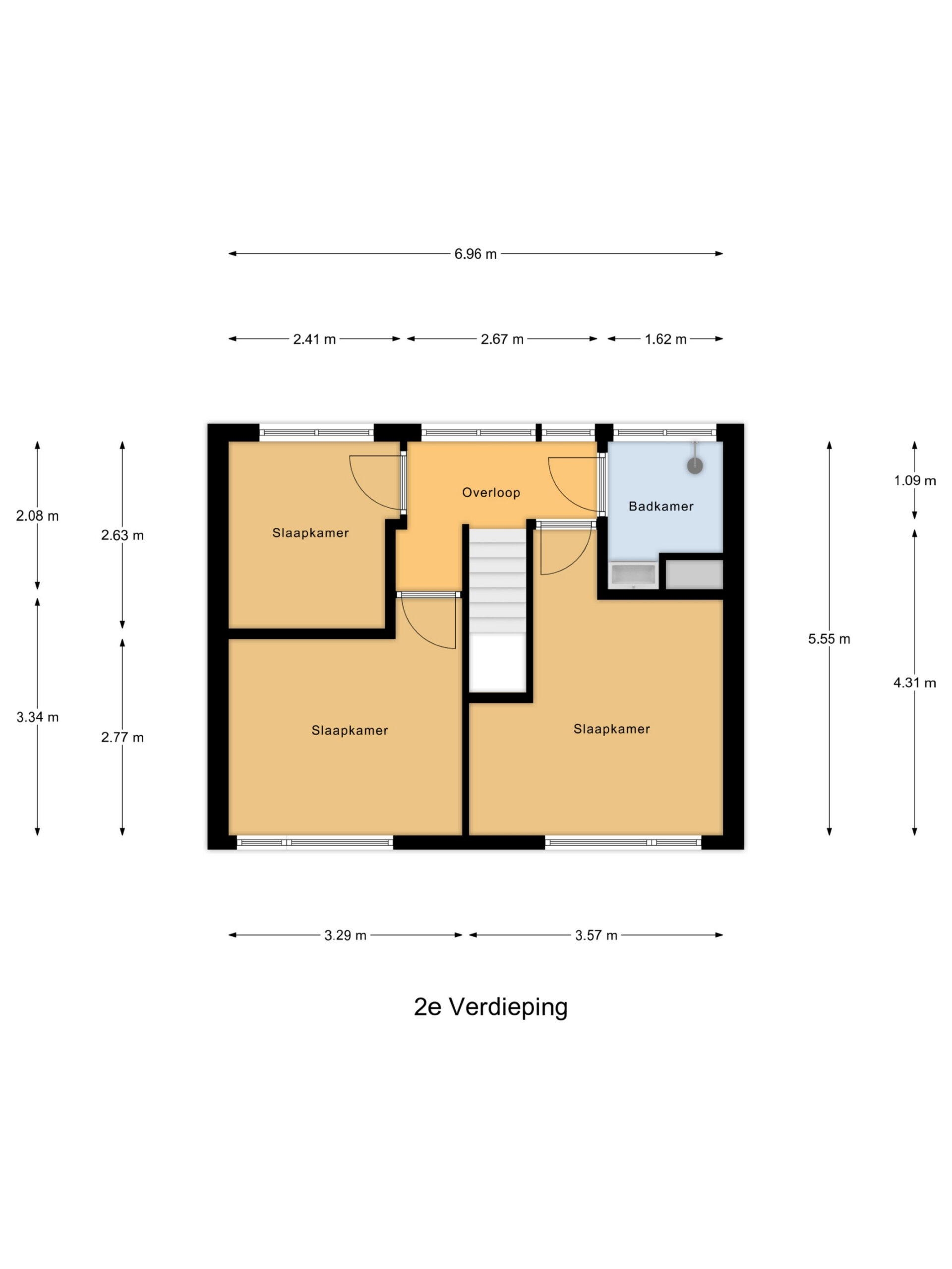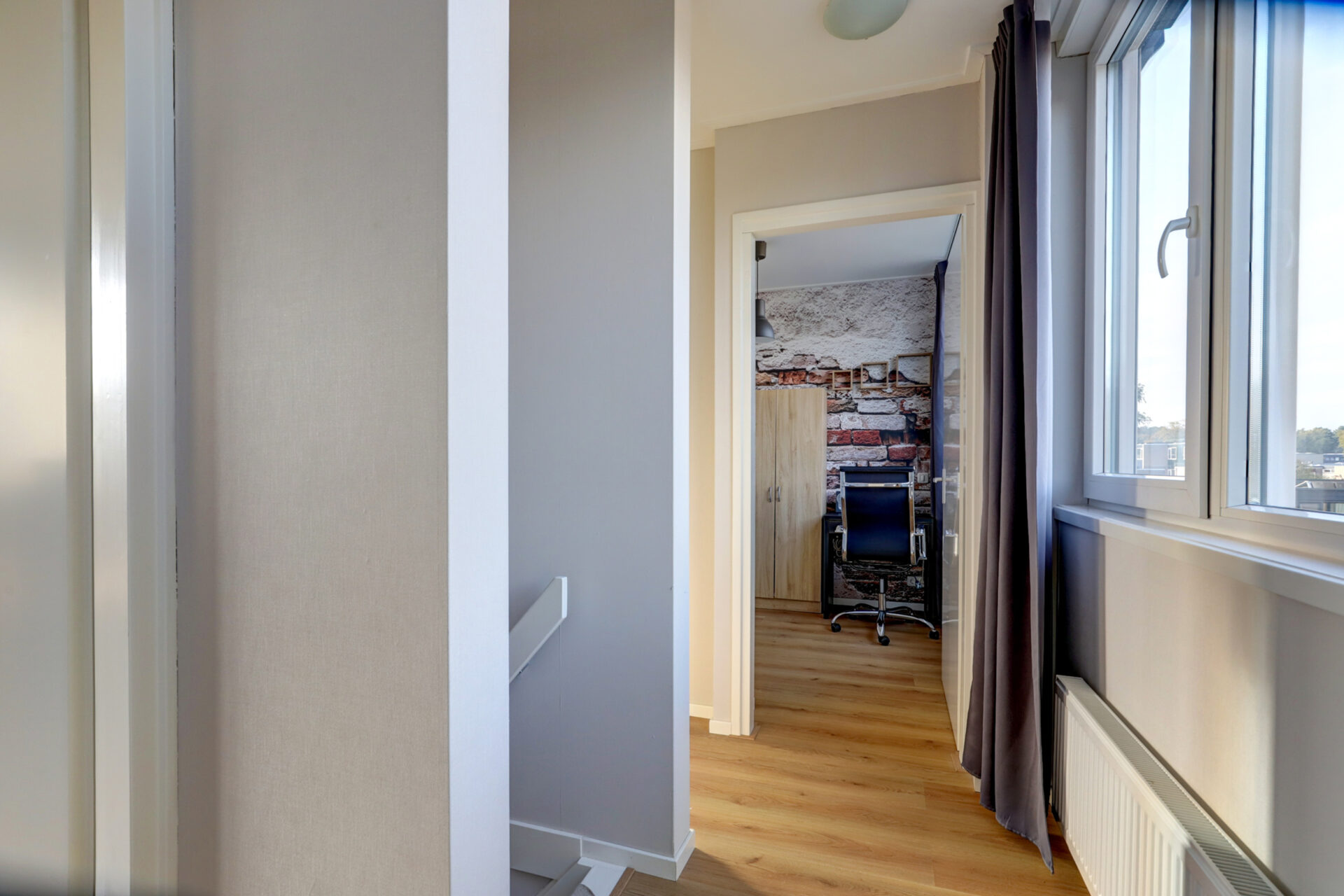 2e Verdieping: Overloop met eveneens een drietal slaap/werk- of hobbykamers en een praktische 2e badkamer met doucheruimte en wastafelmeubel.