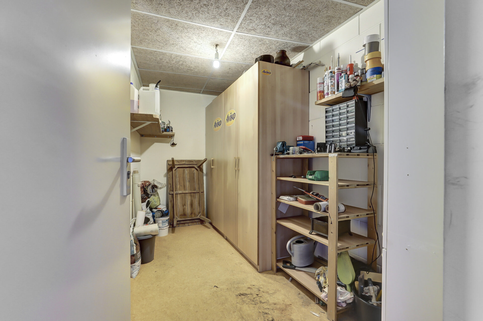 De auto kan overdekt staan onder de carport op het afgesloten parkeerterrein achter en er is een ruime berging (ca. 7 m2).