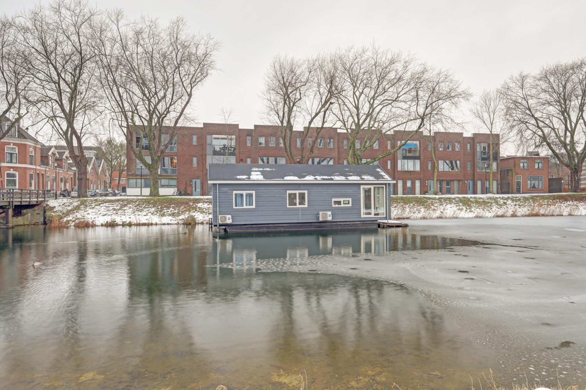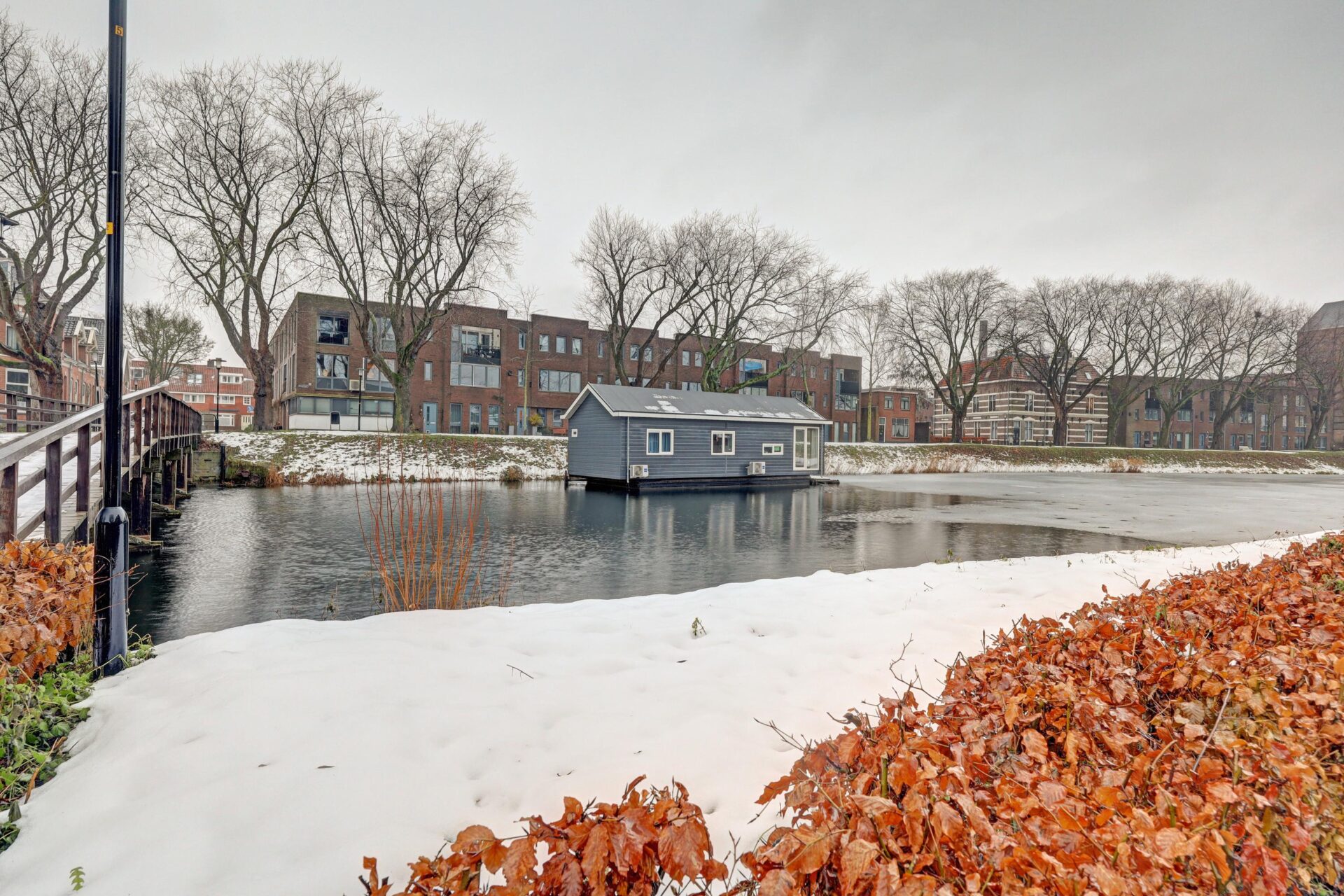 Indeling: vanaf de Bergsingel bereikt u de woonark. Aan de kade ligt de basis met terras en een houten berging. Entree, open halruimte, lichte woonkamer met aan 2 zijden een schuifpui. Terras van 35m² grenzend aan de woonkamer kan nog worden gerealiseerd. Open keuken met diverse inbouwapparatuur. Het geheel wordt verwarmd middels een warmtepomp, maar er kan ook worden gekoeld en gestookt middels de airconditioning units.