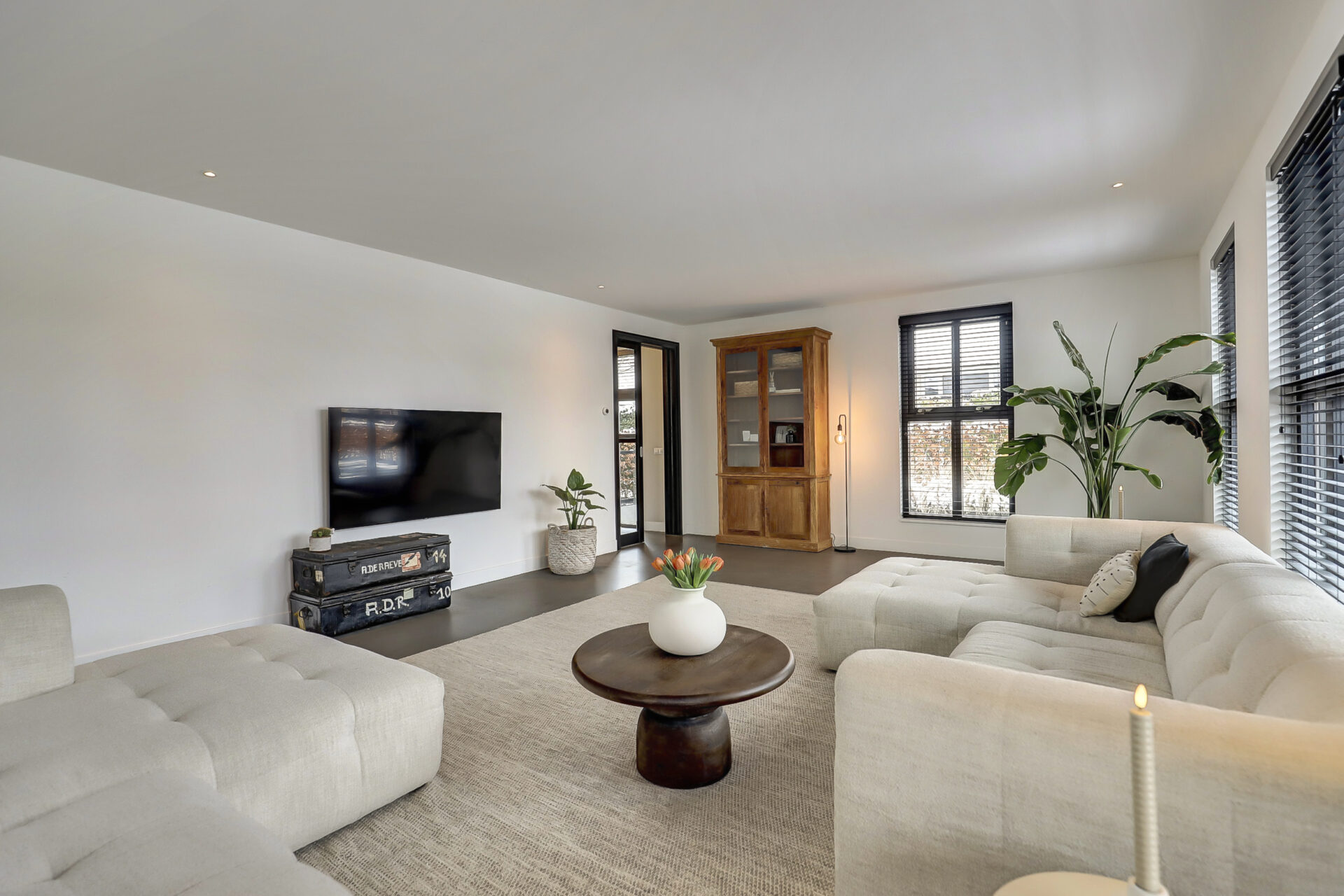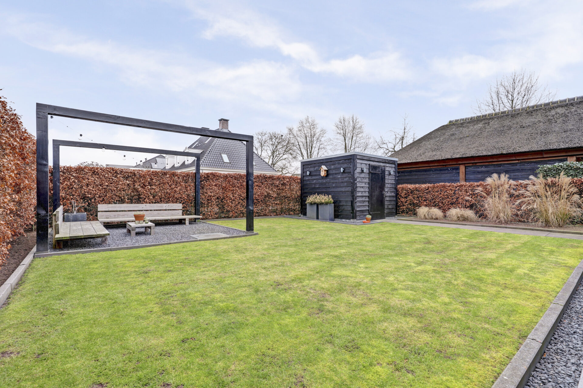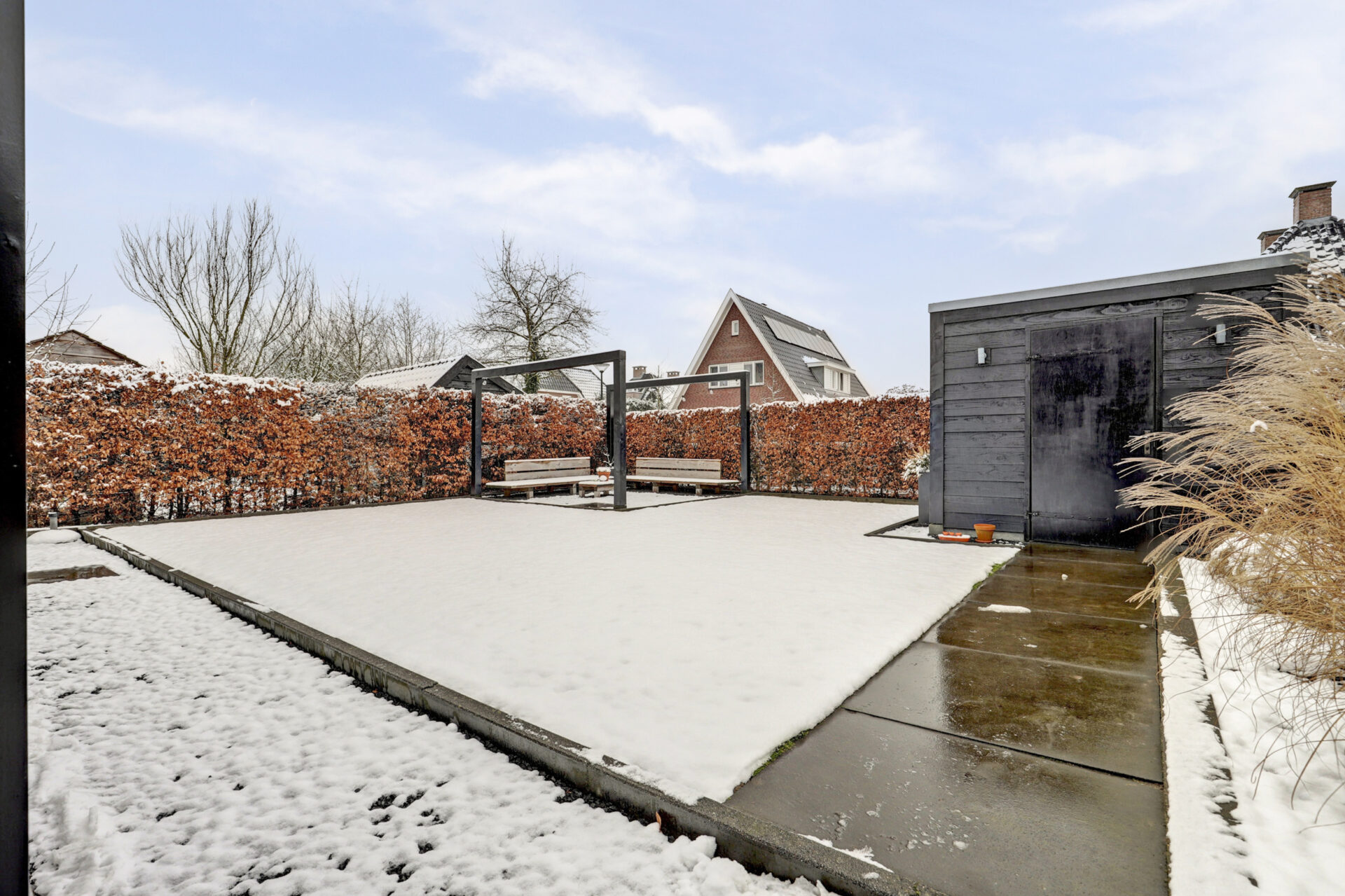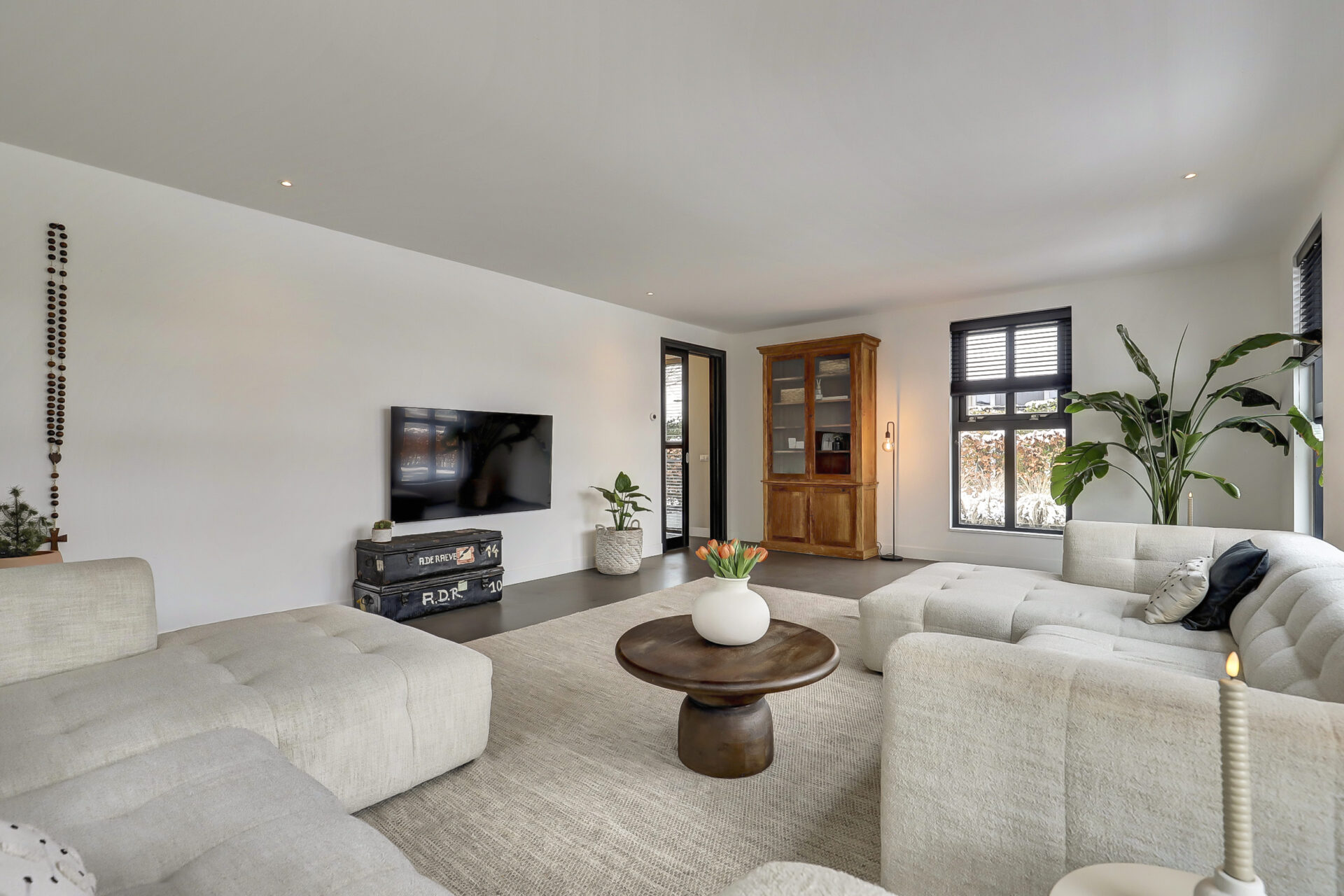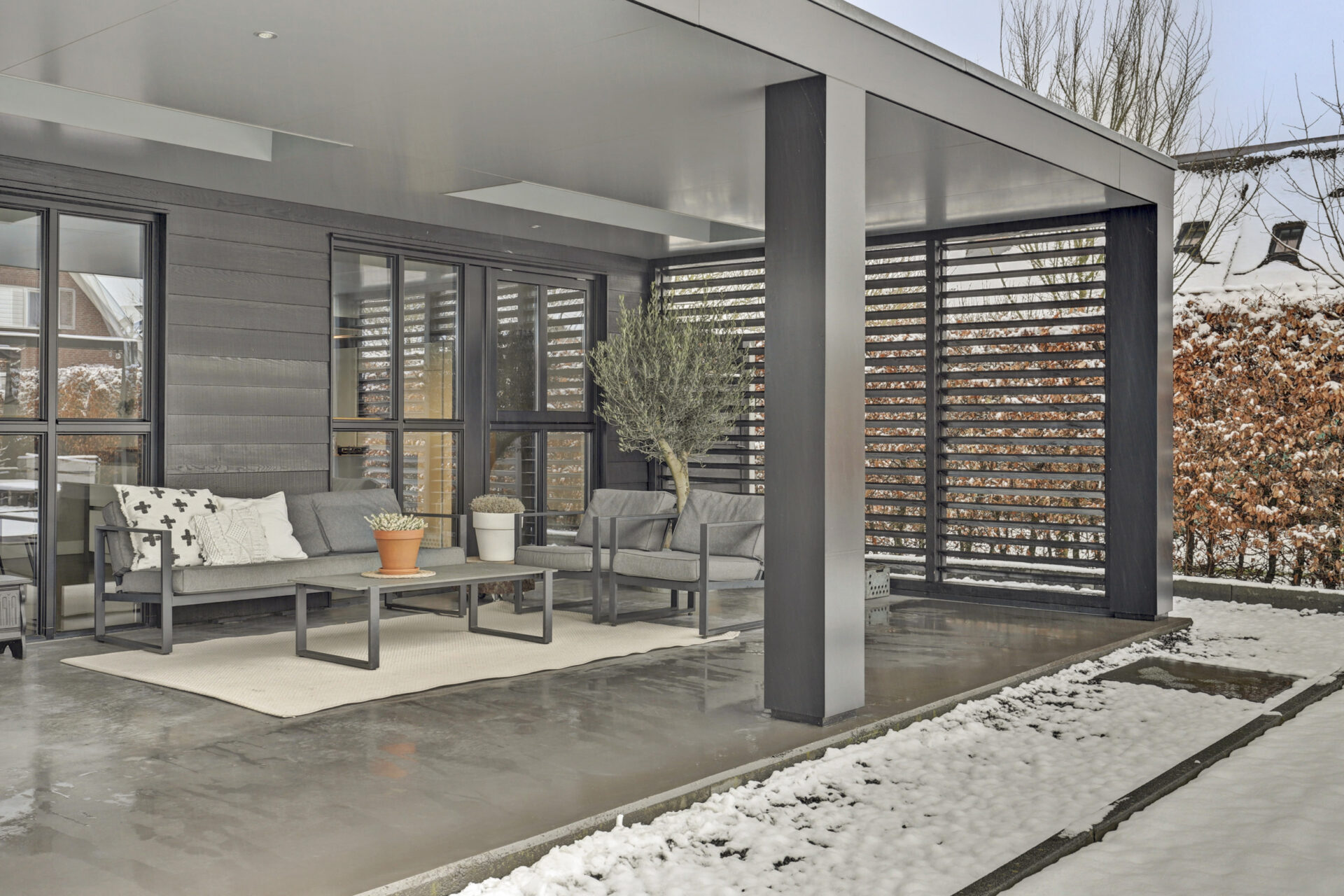 Aan de achterzijde bevindt zich een royale terrasoverkapping die naadloos aansluit op de woning en een verlengstuk vormt van de woonkeuken. Hier is het in alle seizoenen heerlijk vertoeven — van lange zomeravonden tot knusse winterdagen. Deze woning is volledig instap klaar en biedt een exclusieve woonbeleving voor wie waarde hecht aan kwaliteit, comfort en uitstraling.