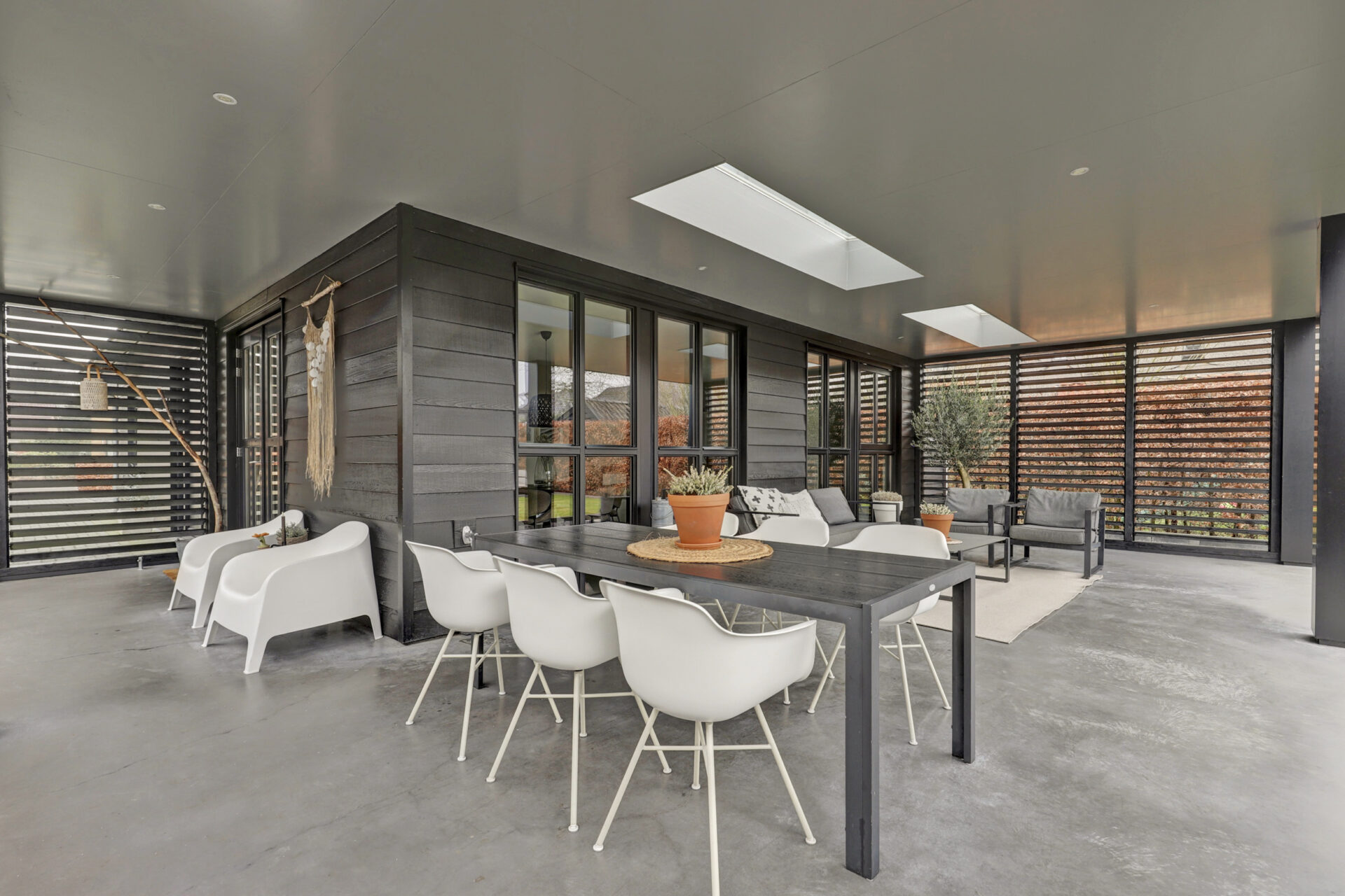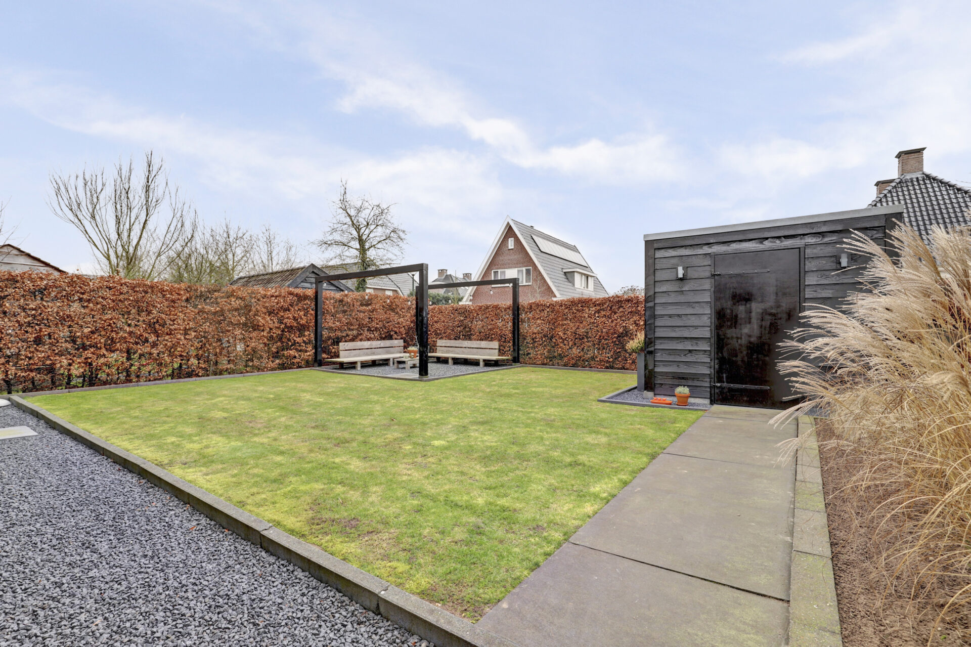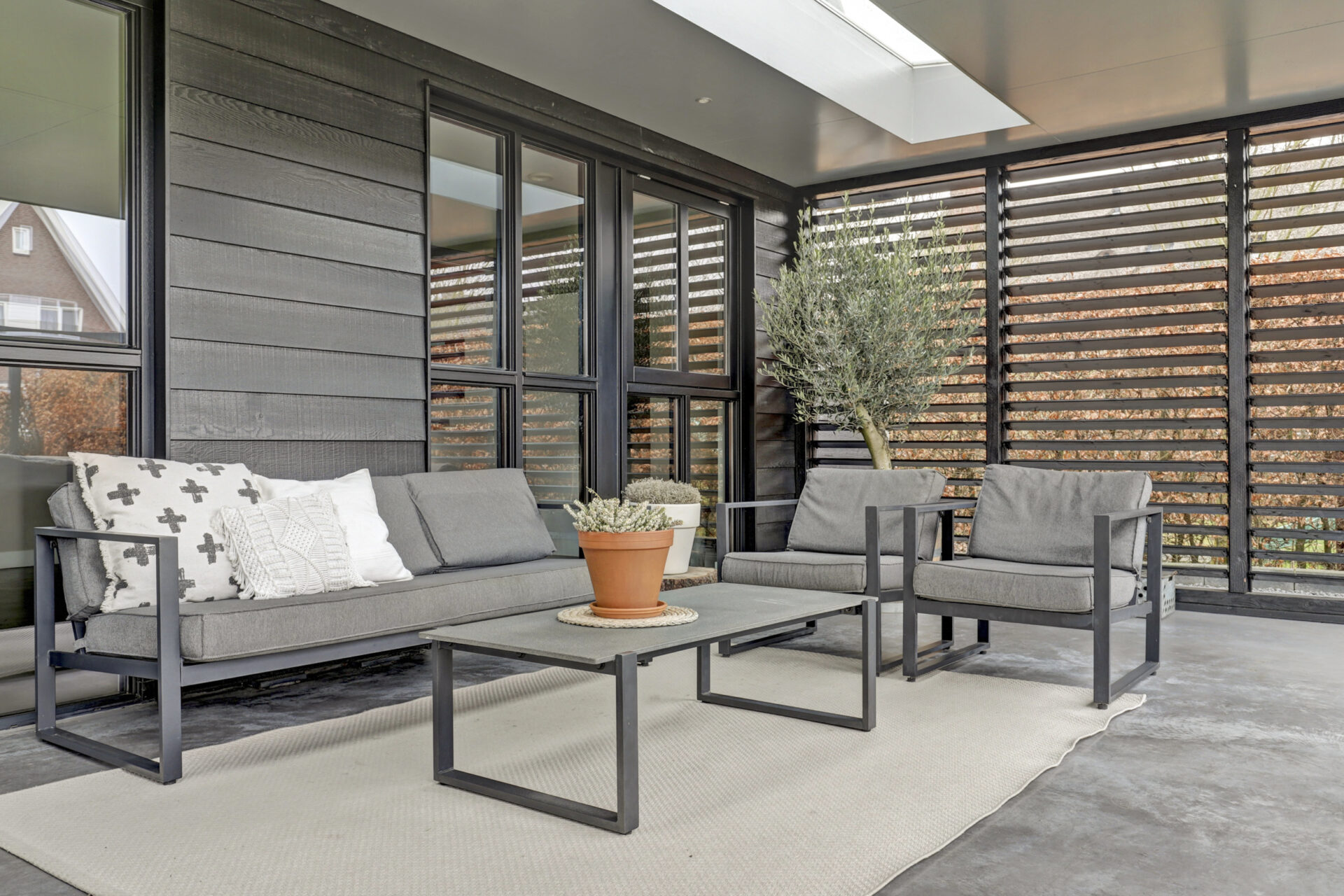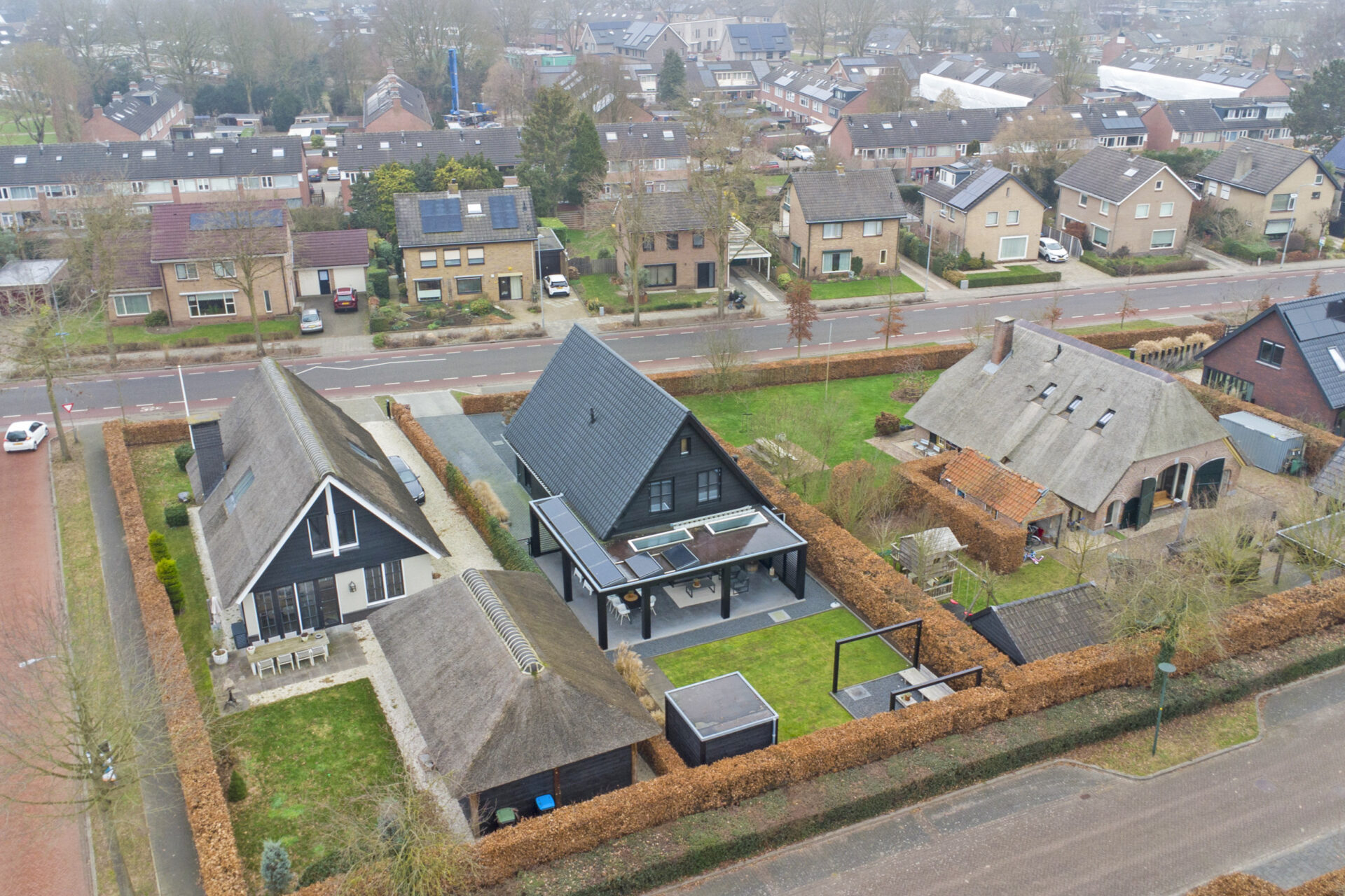 Aan de achterzijde bevindt zich een royale terrasoverkapping die naadloos aansluit op de woning en een verlengstuk vormt van de woonkeuken. Hier is het in alle seizoenen heerlijk vertoeven — van lange zomeravonden tot knusse winterdagen. Deze woning is volledig instap klaar en biedt een exclusieve woonbeleving voor wie waarde hecht aan kwaliteit, comfort en uitstraling.