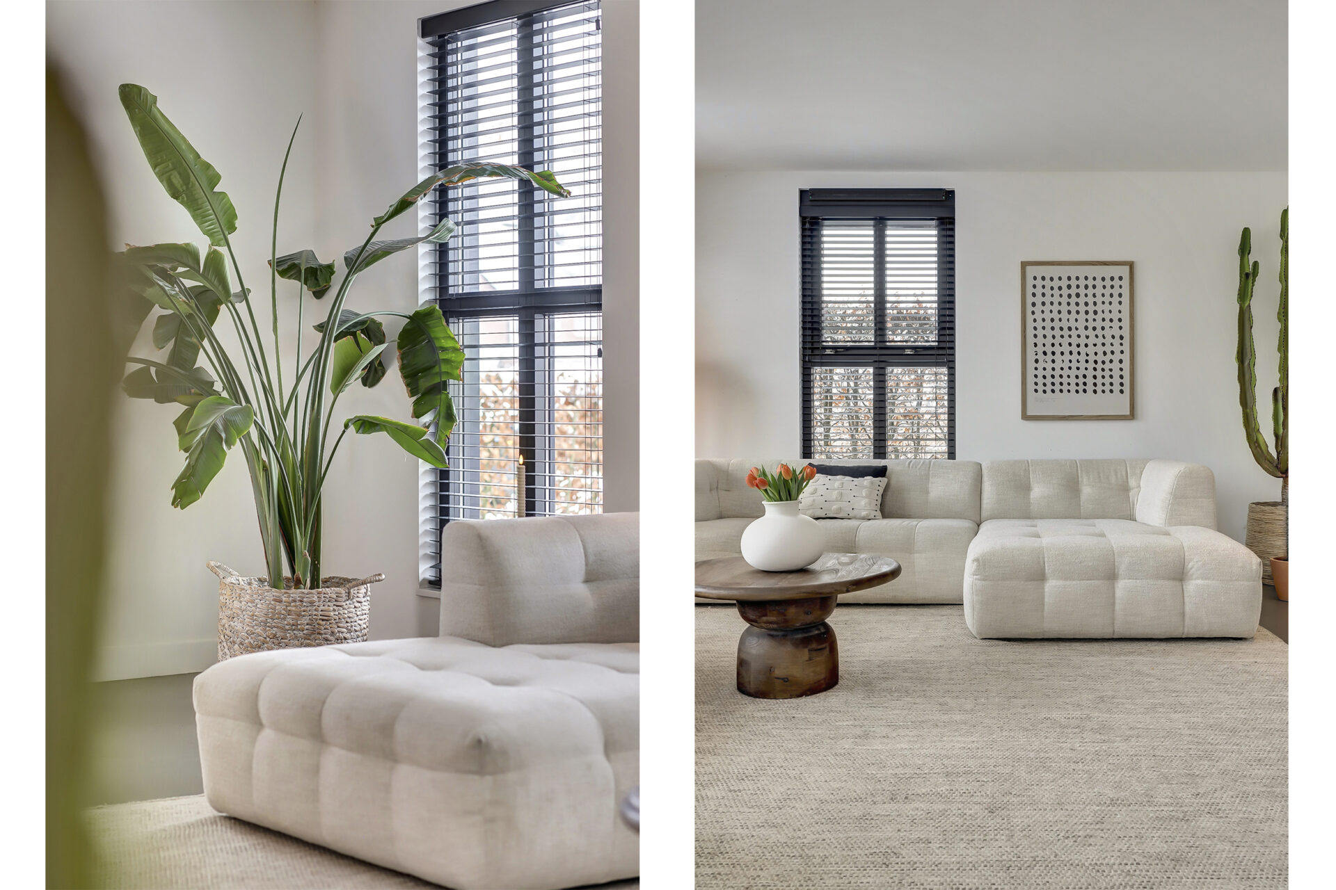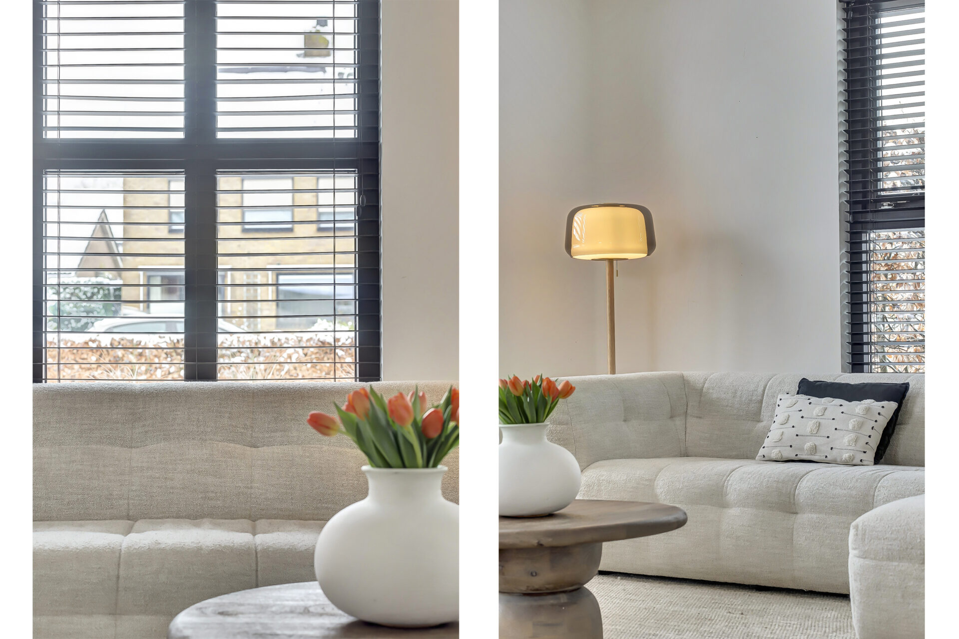 * Fraaie houten luxaflex sieren de ramen, wat voor een speels lichtinval zorgt