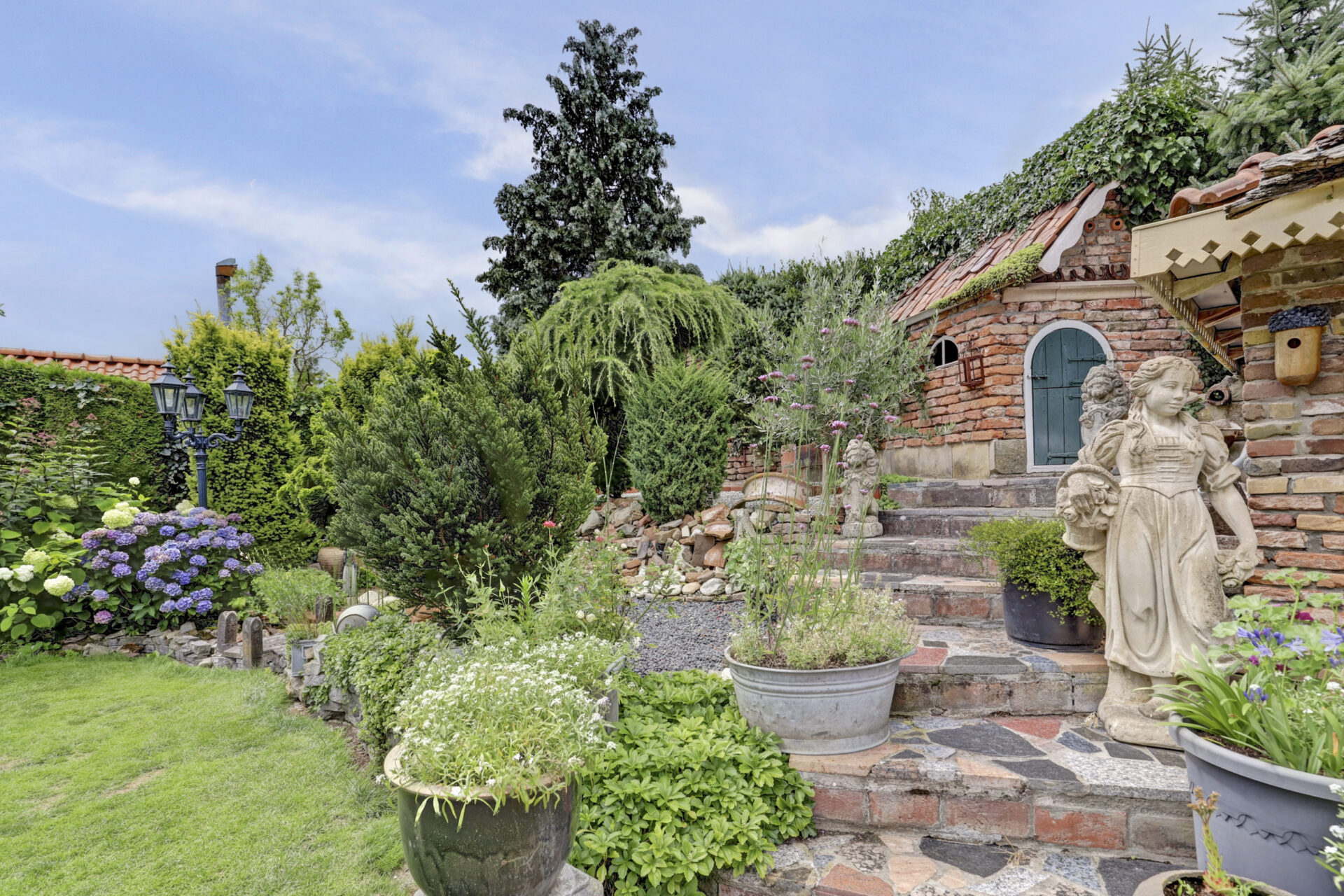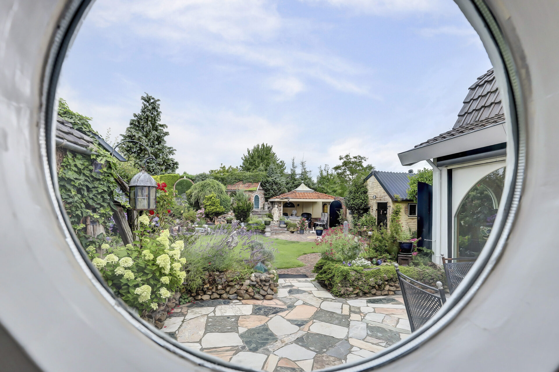 De fraai aangelegde tuin is een waar genot voor iedere liefhebber van het buitenleven. De tuin is grotendeels ingericht als sfeervolle siertuin met kleurrijke beplanting en gezellige zithoekjes, terwijl er achter de ruime schuur een gedeelte is ingericht als moestuin perfect voor wie graag zelf groente en kruiden kweekt. Dankzij de besloten ligging geniet je hier volop van rust en privacy.