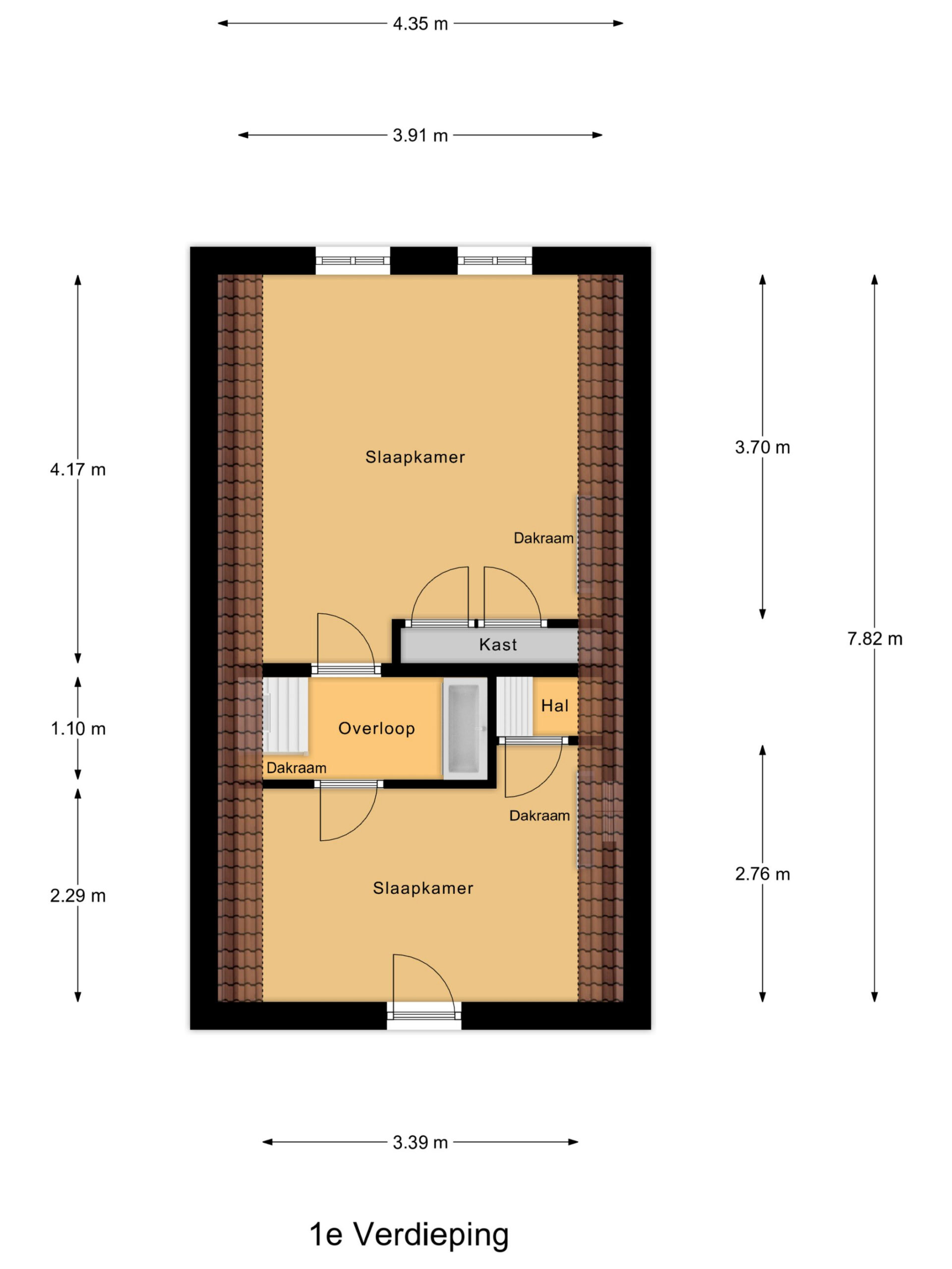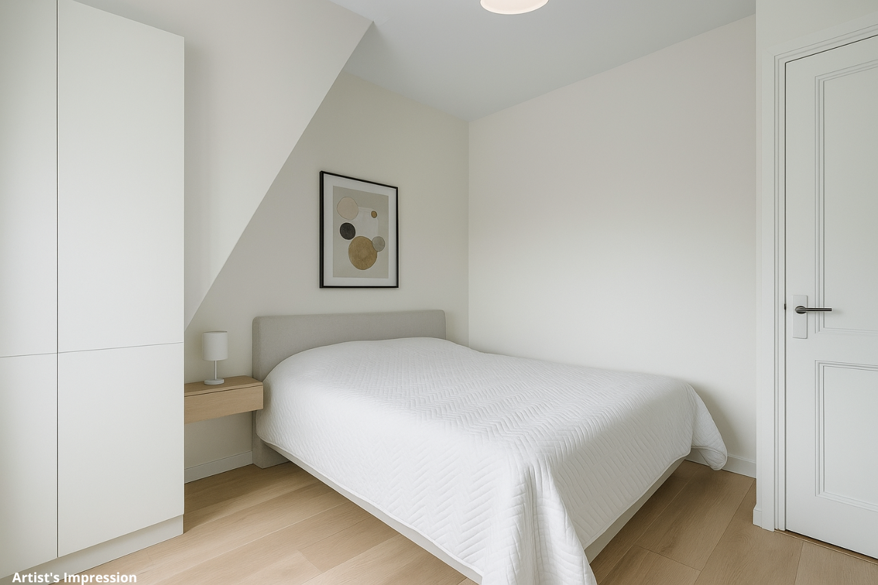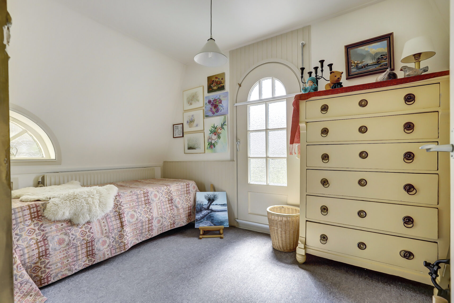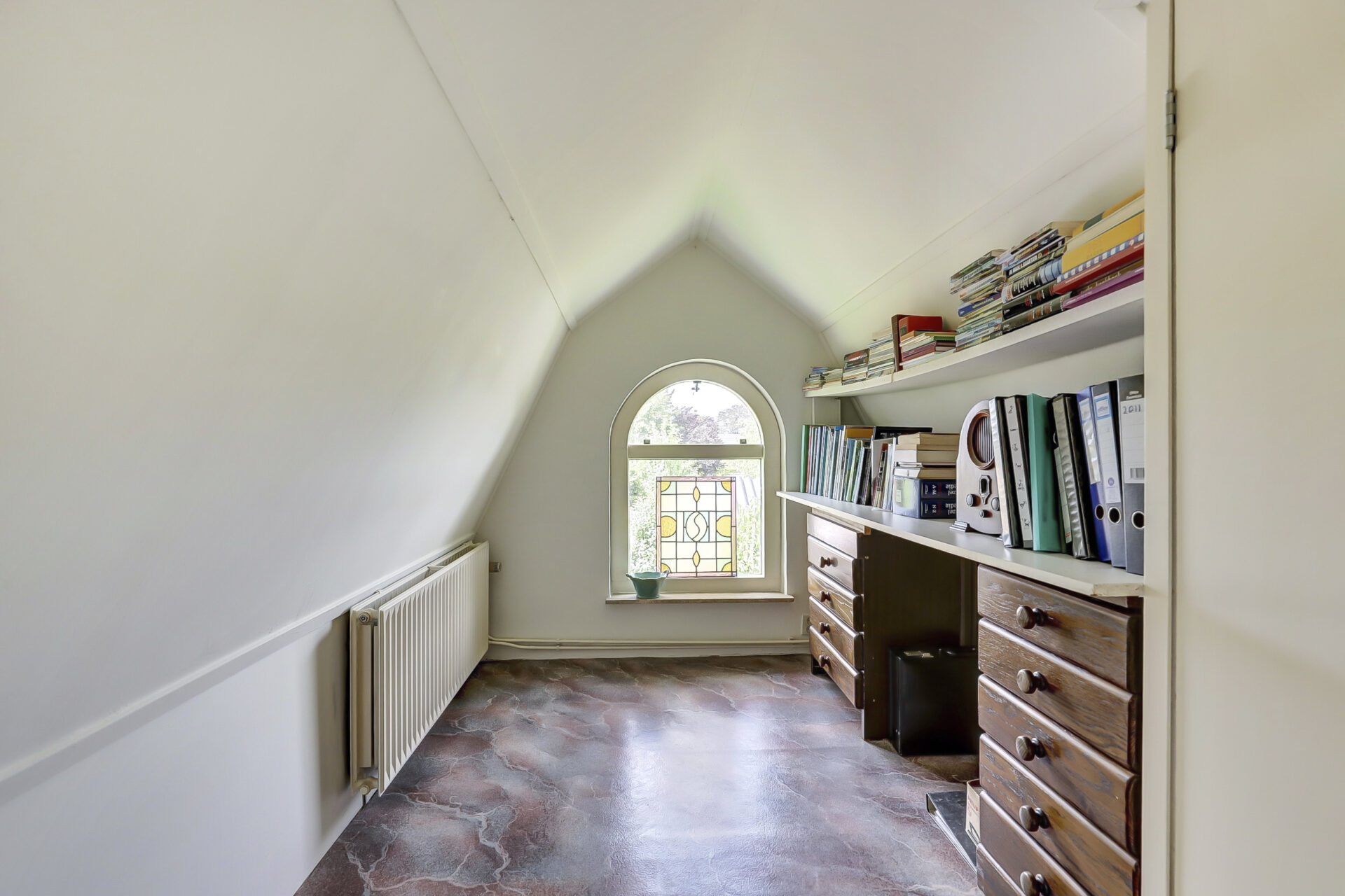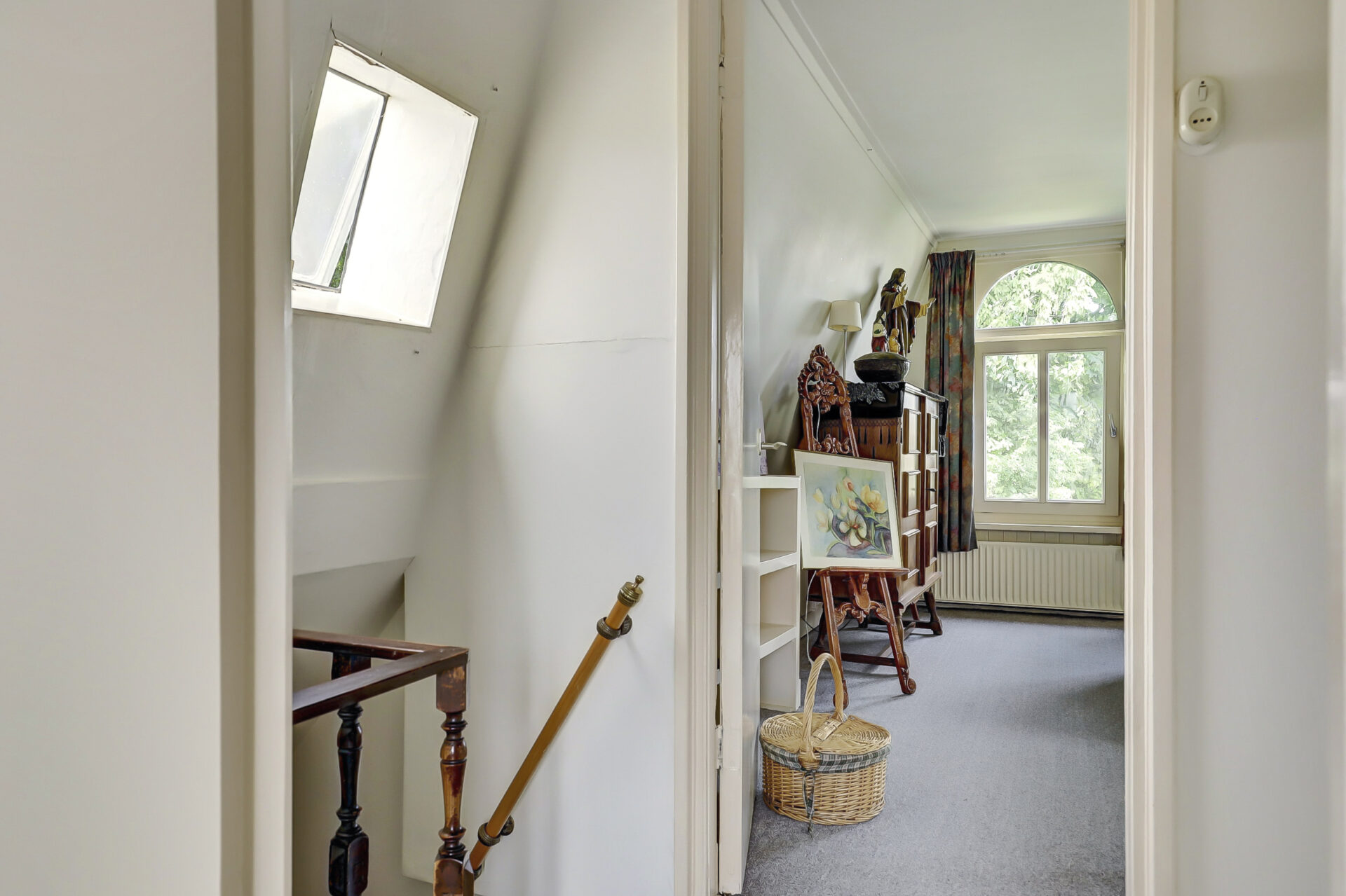 Overloop, twee slaapkamers waarvan één met vaste kastruimte en aan de achterzijde van de woning is een trapopgang naar een derde ruimte op de verdieping.