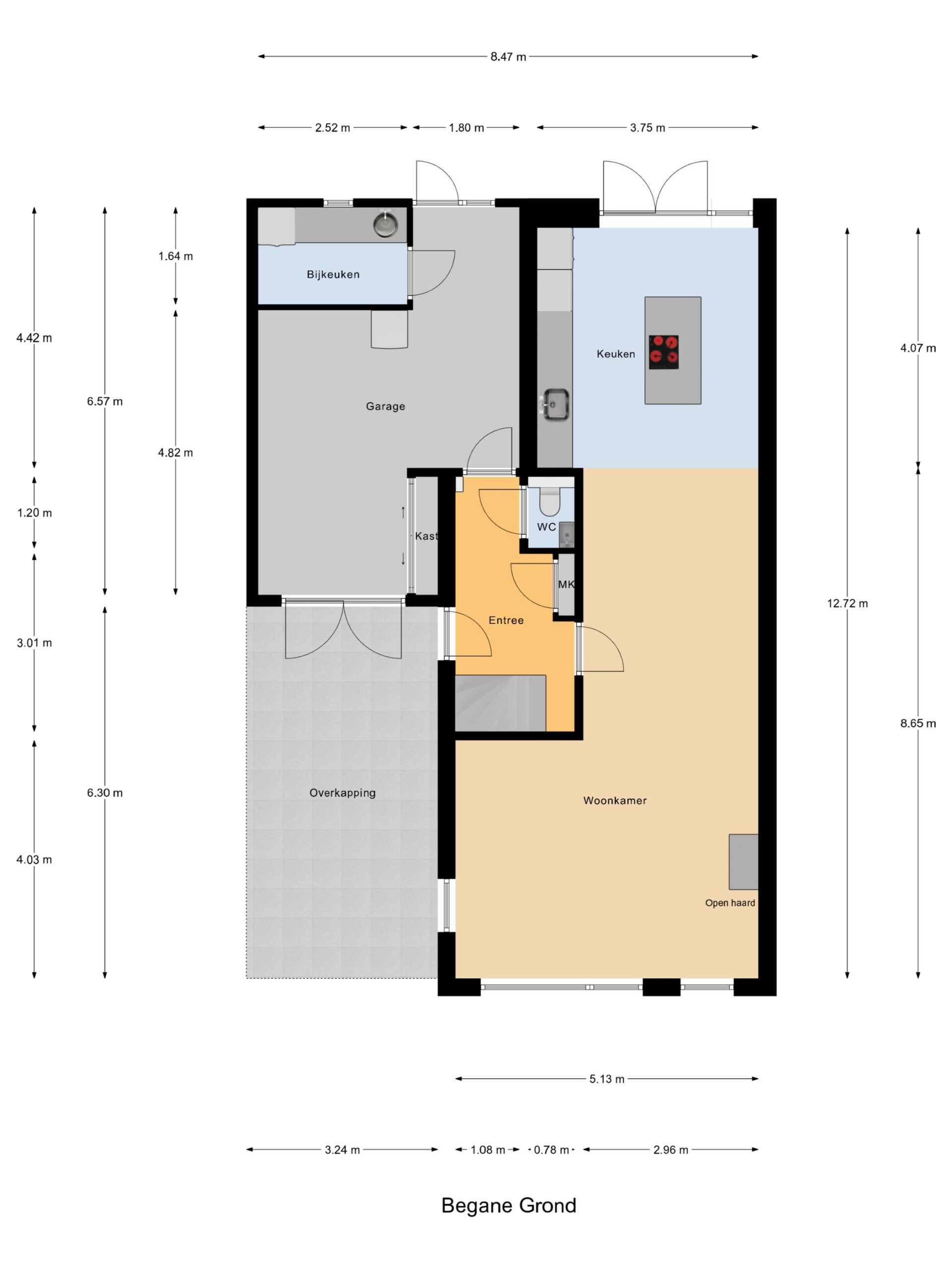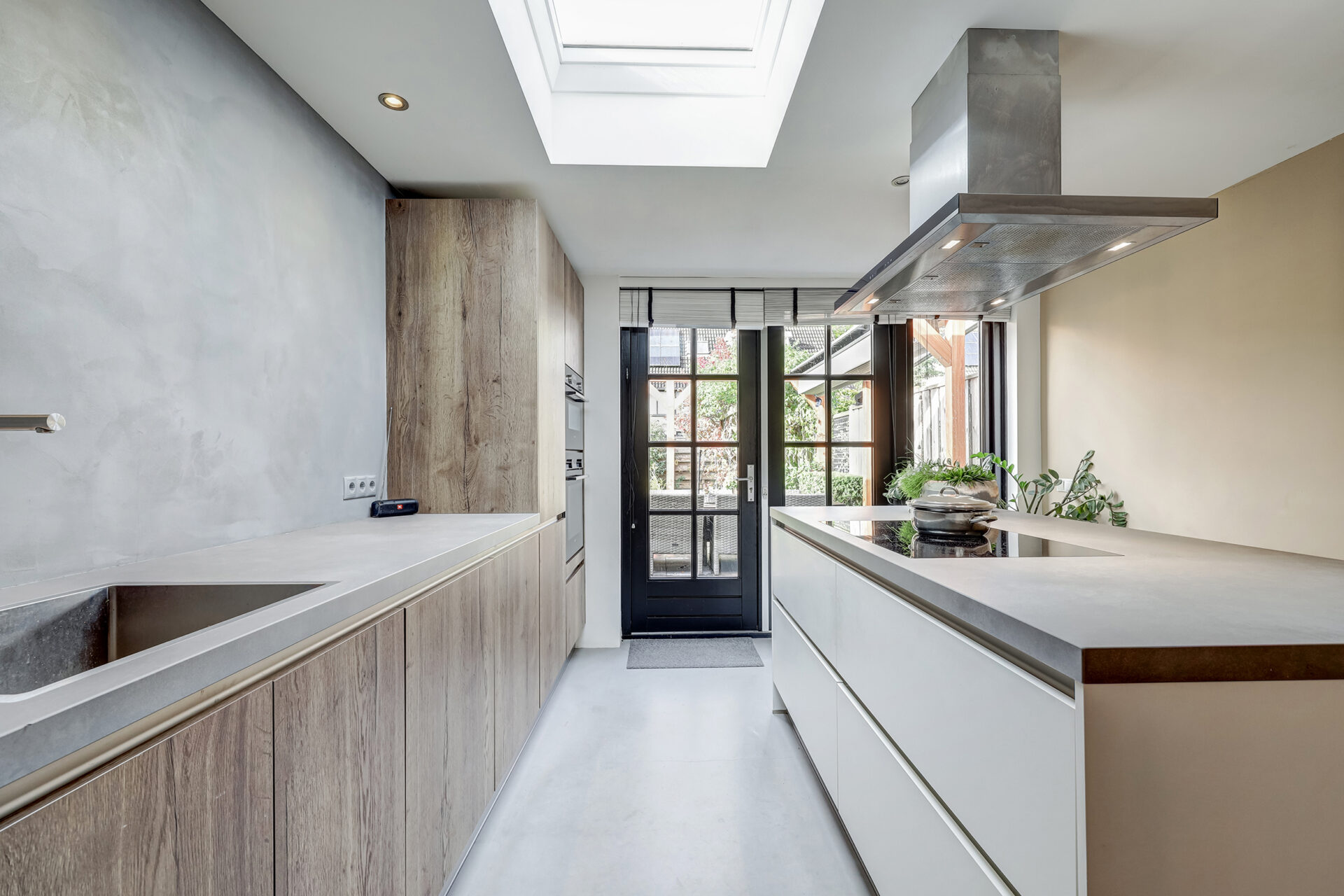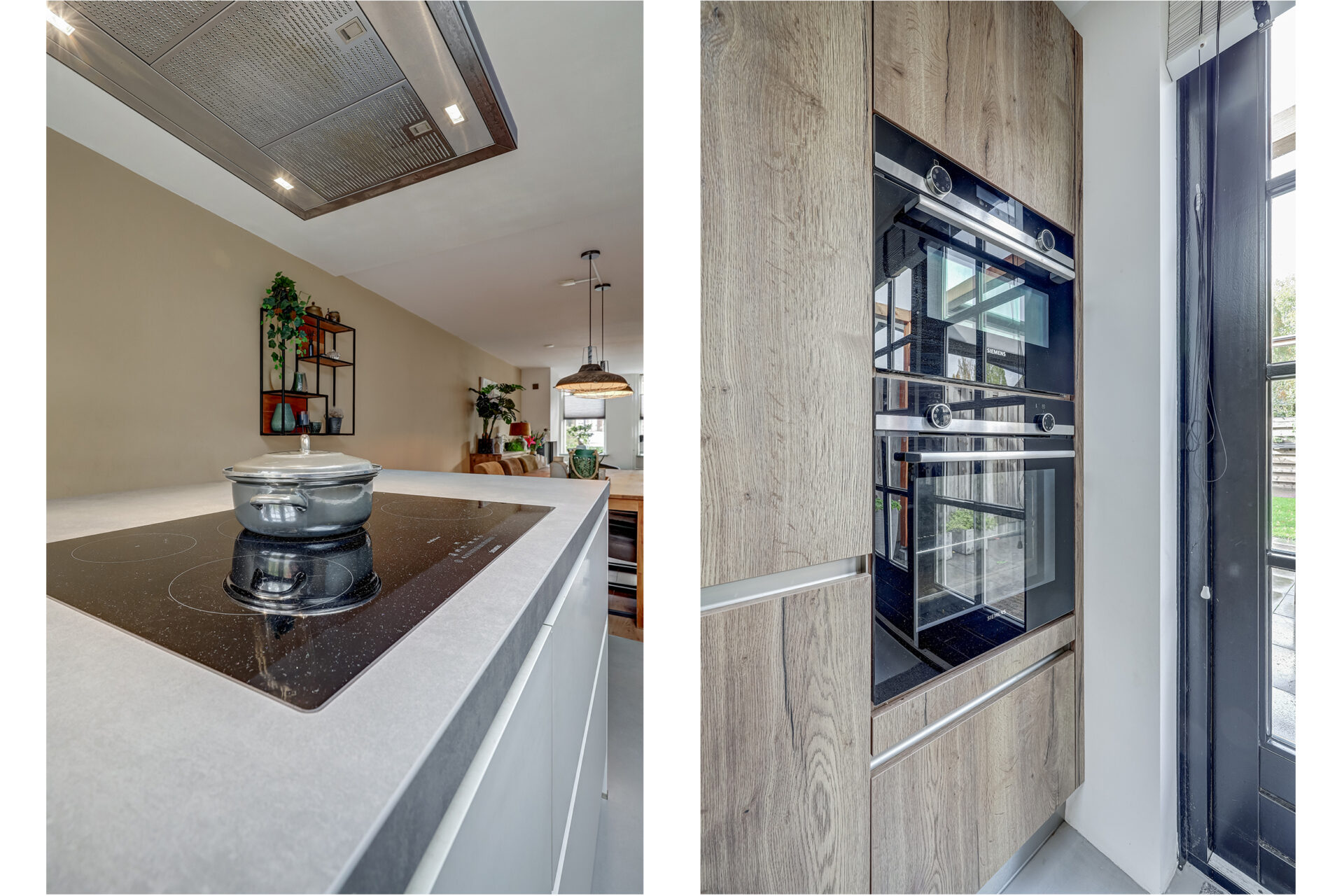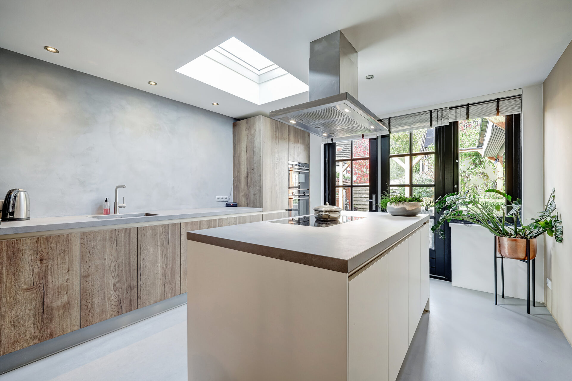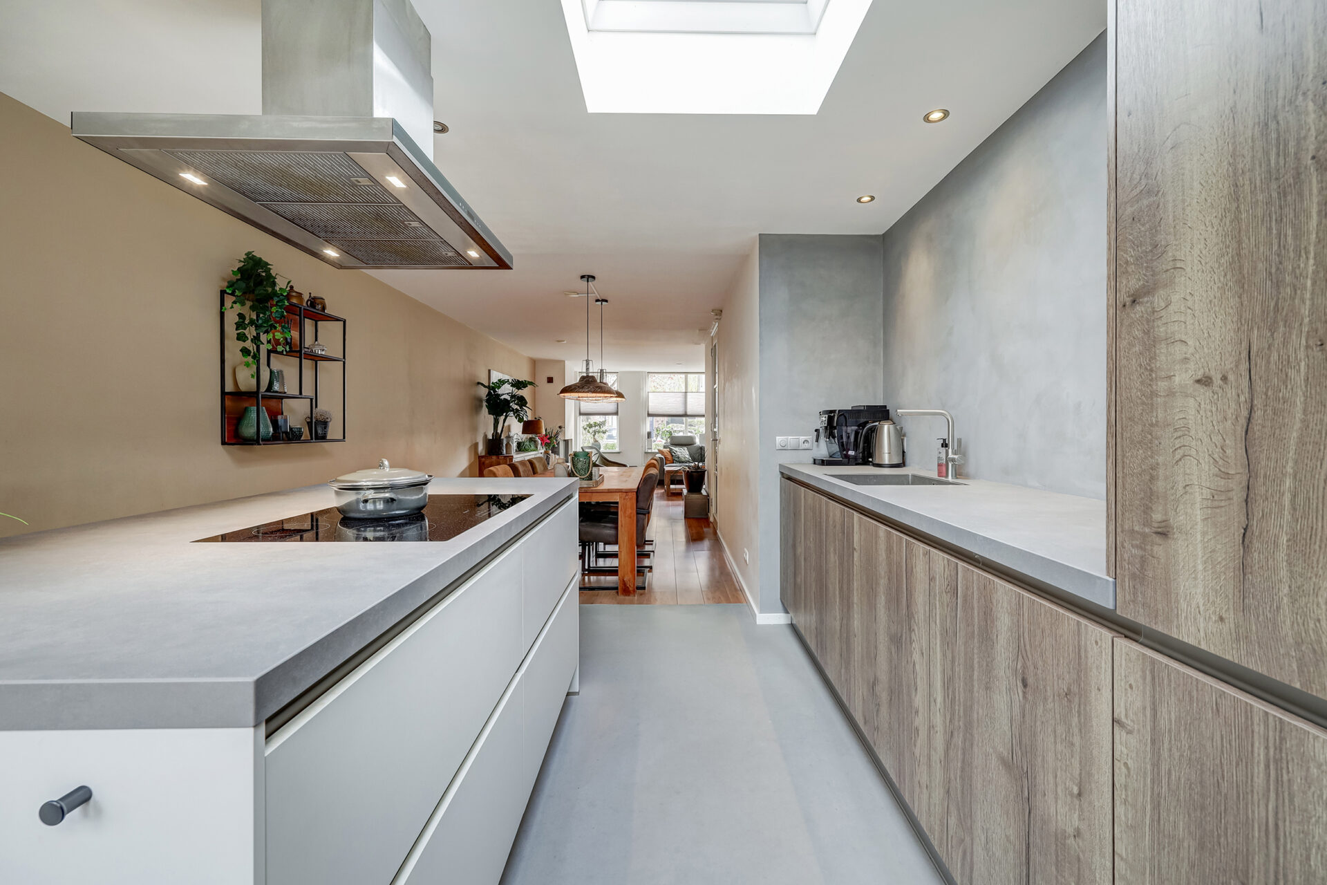 Overdekte entree, hal, toegang tot de garage, toiletruimte en trapopgang. Lichte woonkamer aan de voorzijde met gezellige gashaard, ruimte voor een lange eettafel, de centrale plek van het huis waar je samenkomt met familie en vrienden. Ruime woonkeuken die in 2018 nieuw is geplaatst, een echte blikvanger: modern ingericht met een fraai kookeiland en voorzien van alle gemakken. Een lichtkoepel zorgt voor speels lichtinval. De keuken is aan de achterzijde gesitueerd en van daaruit loop je zo de terras op en de tuin in.
