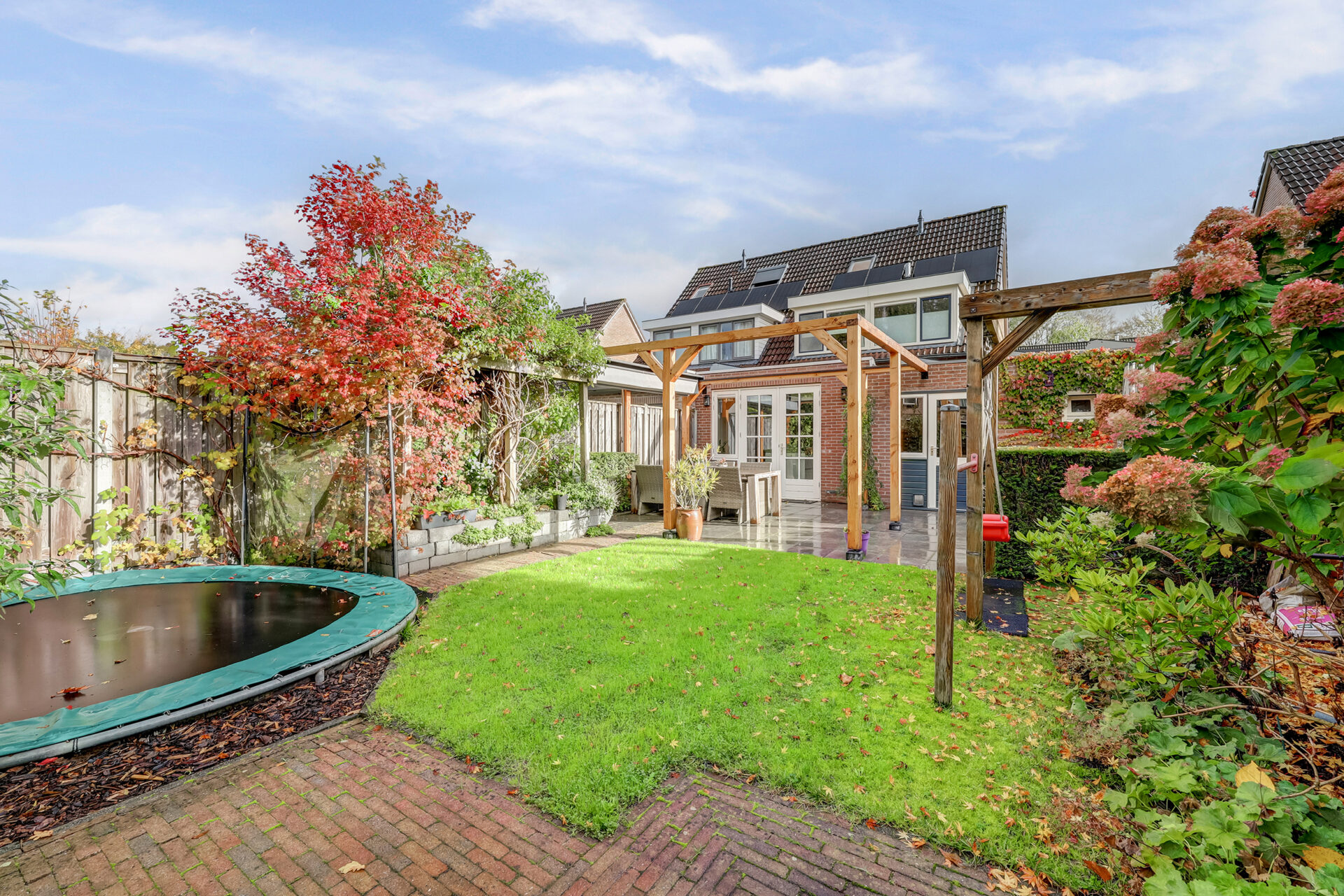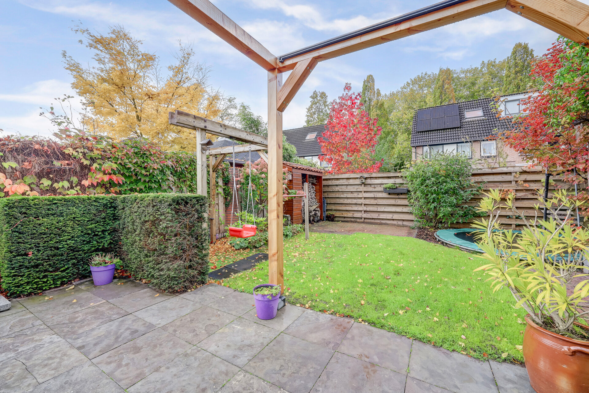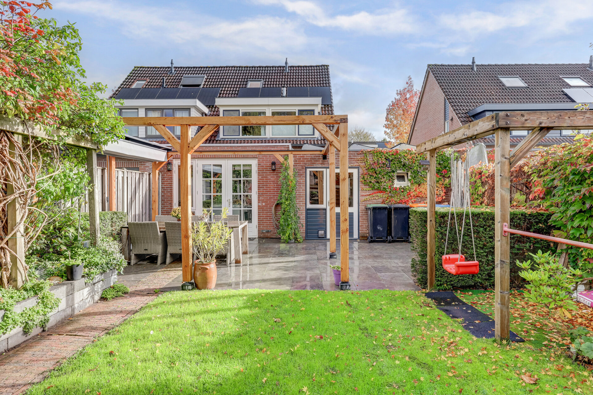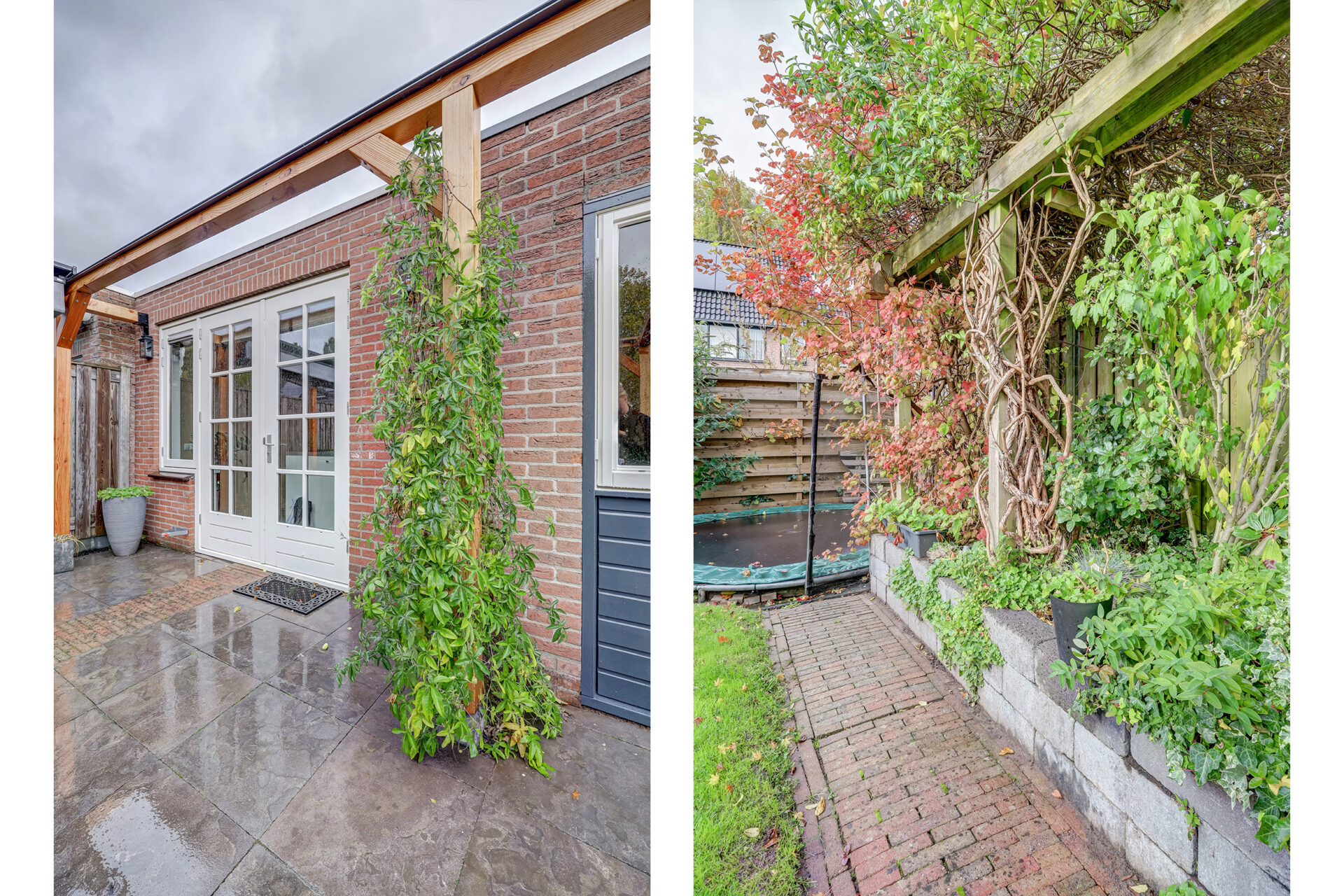 Buiten vind je een fraaie tuin met een pergola rondom het centrale terras. Deze is voorzien van een uitklapbaar schaduwdoek op een railsysteem (aanleg 2023), zodat je tijdens warme zomers heerlijk in de schaduw kunt zitten en kunt genieten van lange avonden buiten.