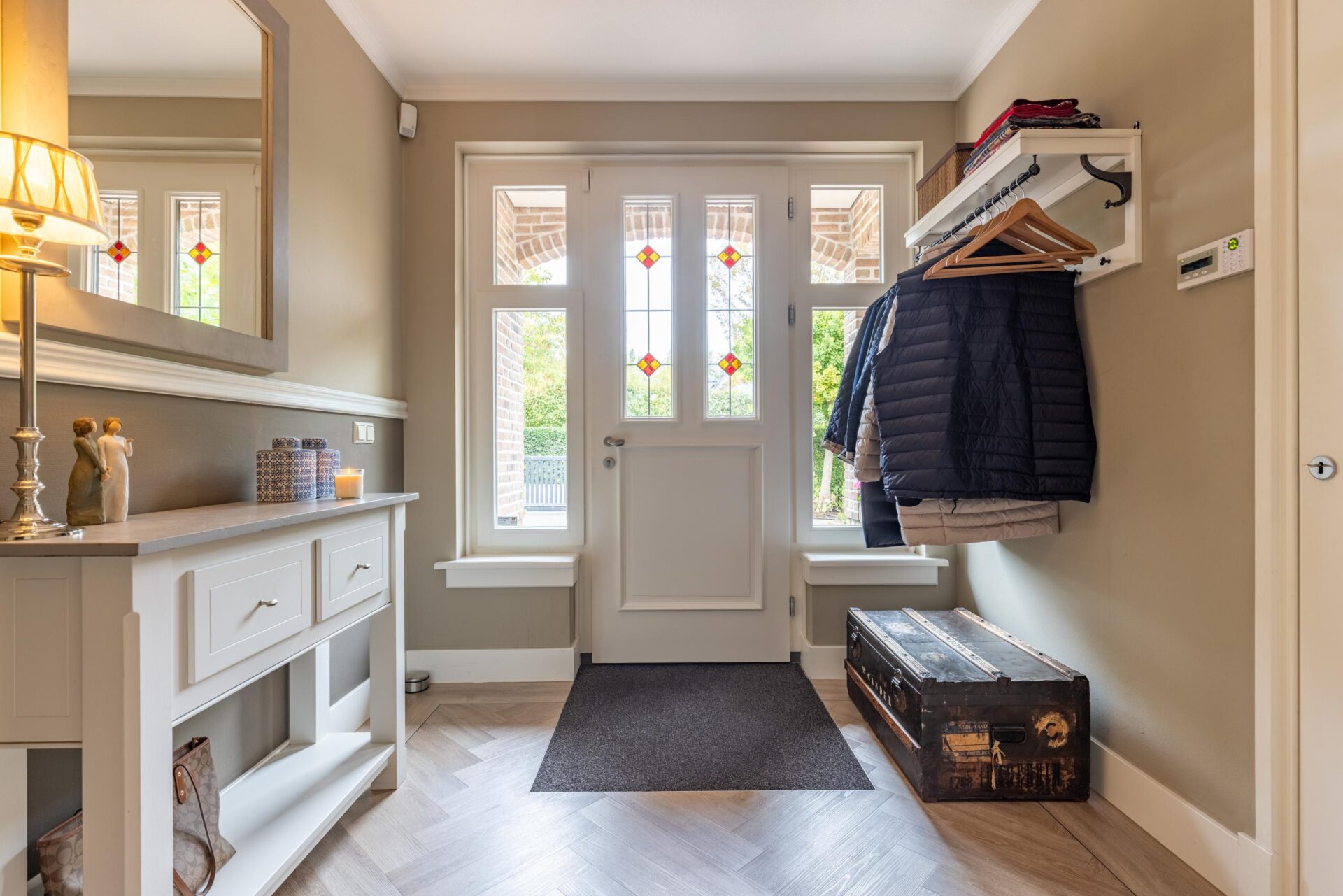 - Sfeerelementen als glas en lood, gashaard, erker, paneeldeuren
