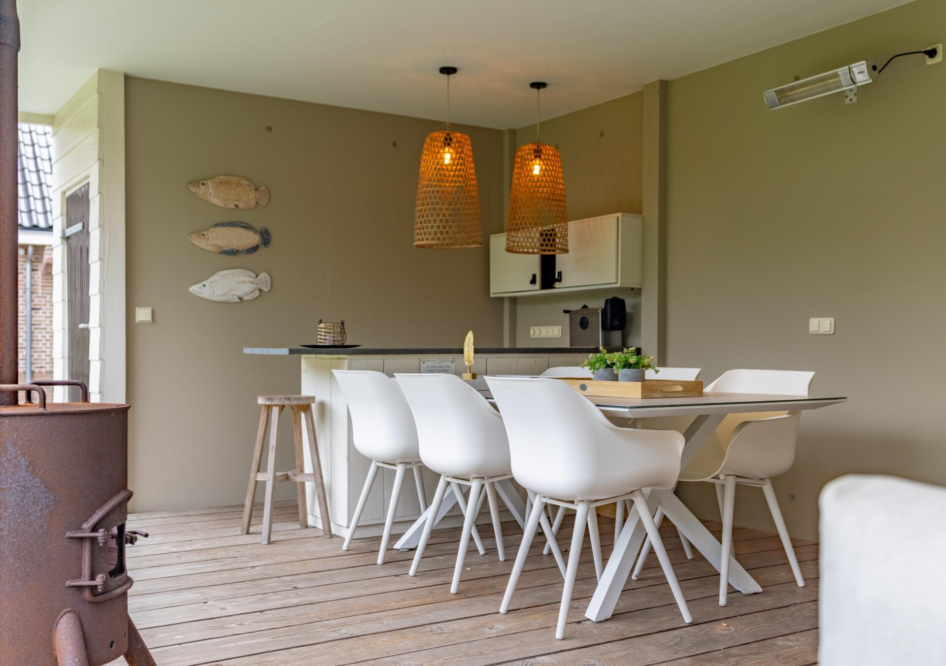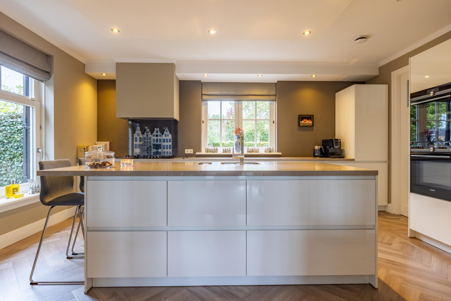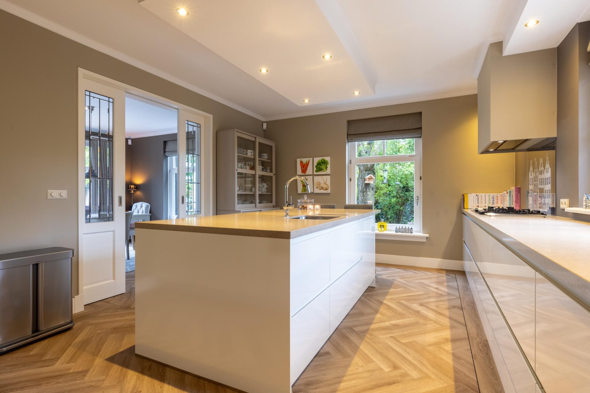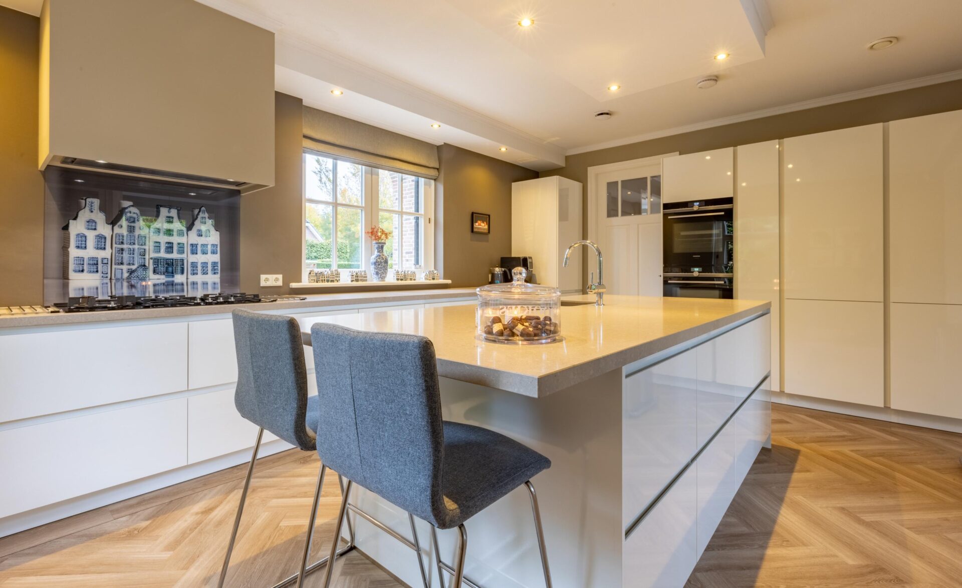 De luxe keuken (2021) is voorzien van hoogwaardige inbouwapparatuur: een 5 pits gaskookplaat, afzuigkap, combi oven magnetron, stoomoven/oven, dubbele koelkast, dubbele vrieskast en vaatwasser.