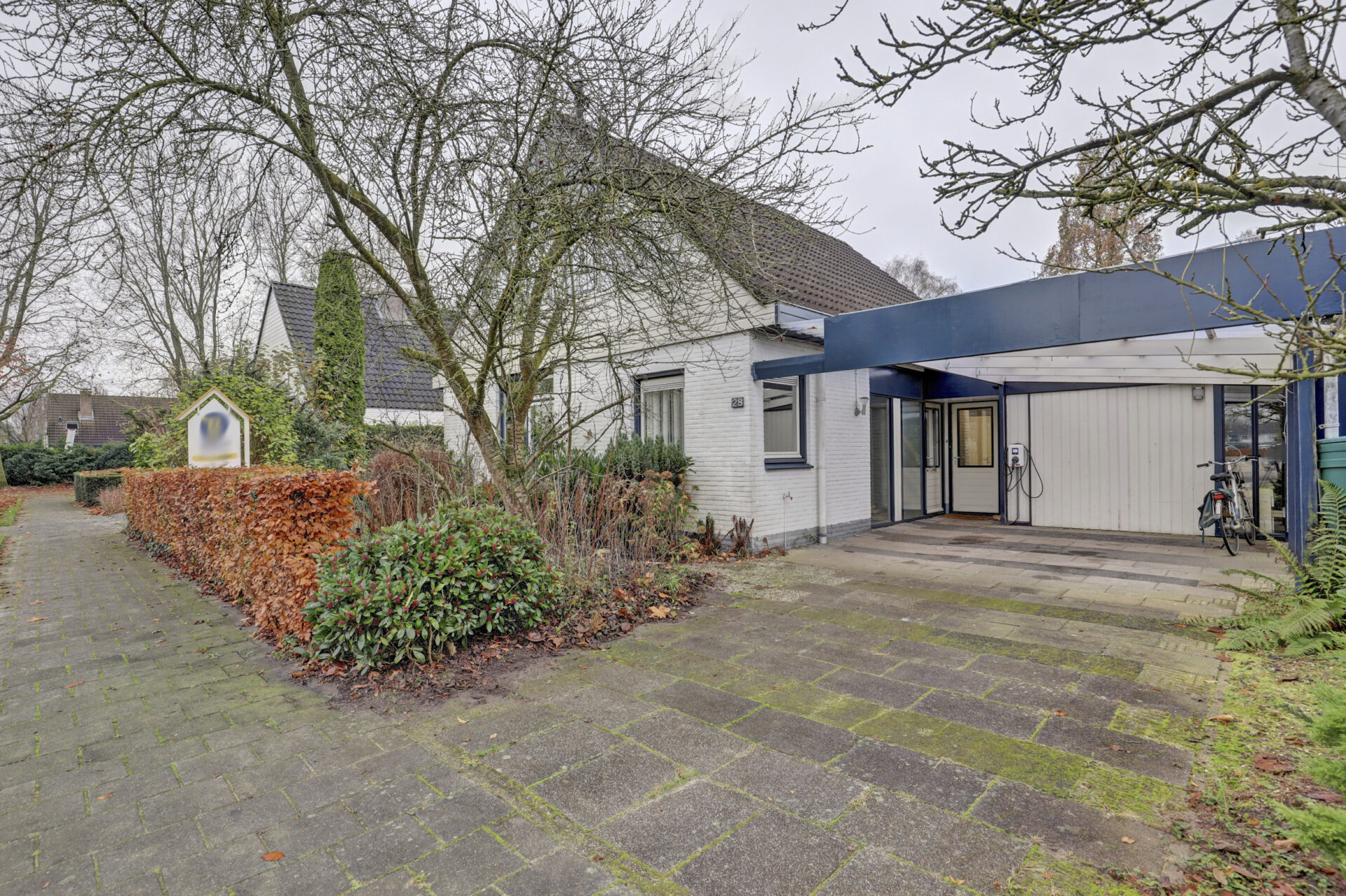 Aan de voorzijde bevindt zich een brede carport waar gemakkelijk twee wagens naast elkaar kunnen parkeren, met daarnaast voldoende ruimte voor fietsen en een laadpaal.