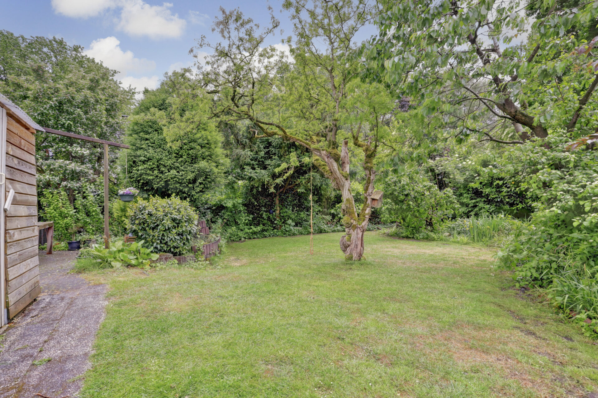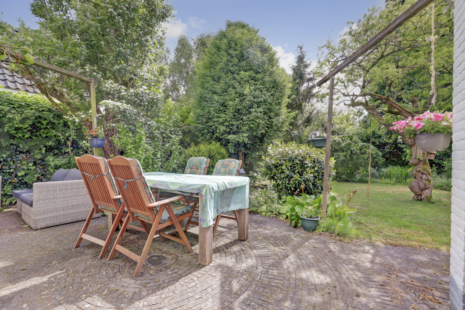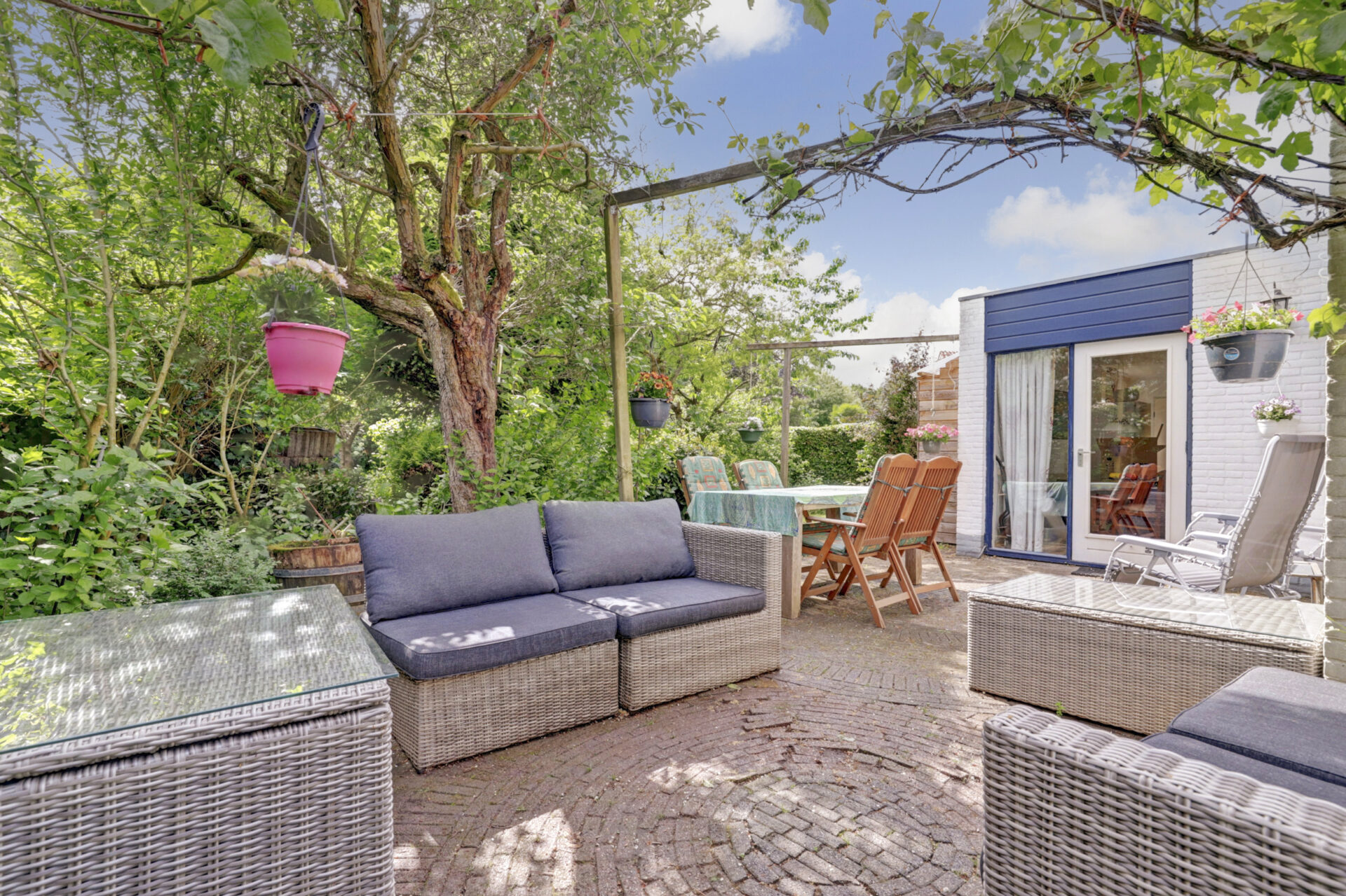 Begane grond: Entree, ruime hal met toiletruimte, tussenhal van waaruit kantoor-/werkkamer te bereiken, inpandige berging, lichte woonkamer (kamer-en-suite), waarbij je vanuit de tuinkamer zijde middels een grote schuifpui de heerlijke tuin inloopt. De tuin is mooi besloten en gunstig gelegen op de zuid/west zijde en aan de achterzijde grenst deze aan een plantsoen. Door de diverse bomen in de tuin is er altijd wel een zon- of schaduwplekje te vinden waar het onder het genot van een kopje koffie heerlijk toeven is. Extra houten berging voor de opslag van de tuinkussens en tuingereedschap. De open keuken is dusdanig ruim waardoor er genoeg ruimte is voor een grote eettafel. De keukeninrichting is vernieuwd in 2021 en voorzien van alle gemakken. Praktische bijkeuken met o.a. aansluiting voor de wasmachine en de droger en van waar je ook een doorgang naar buiten (voorzijde) hebt. Ruime slaapkamer met tuindeur en eigen badkamer met inloopdouche, wastafel en wandcloset.