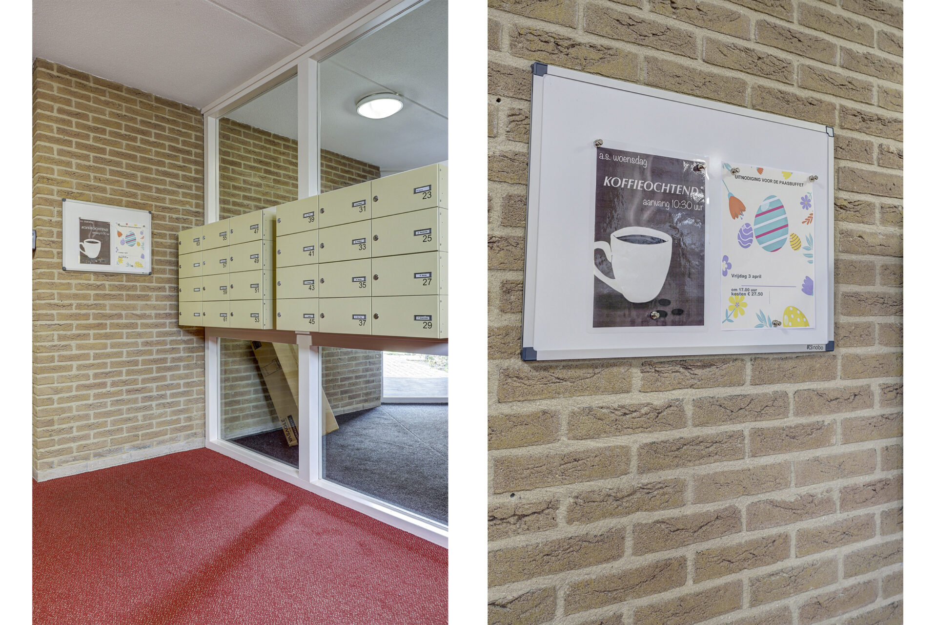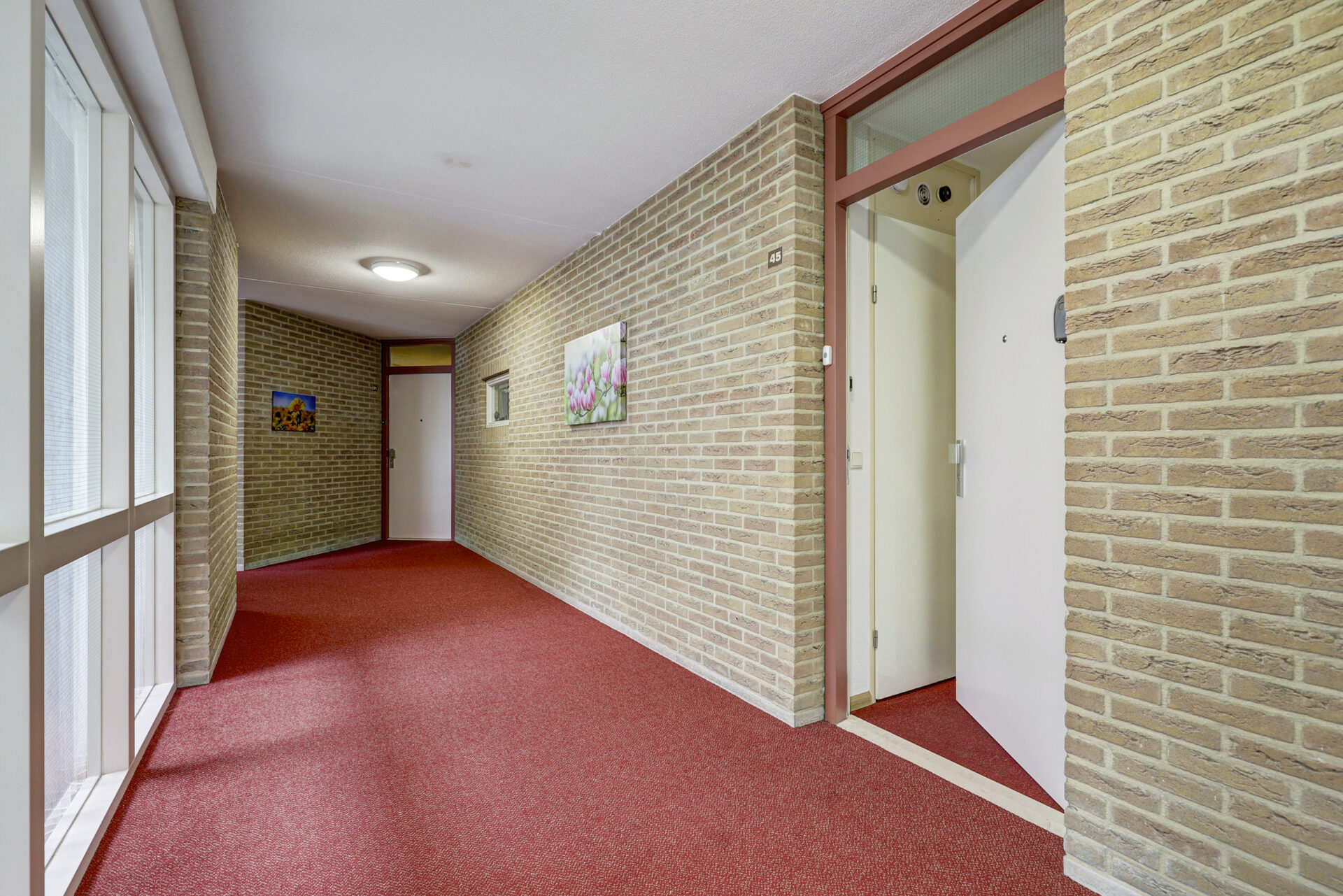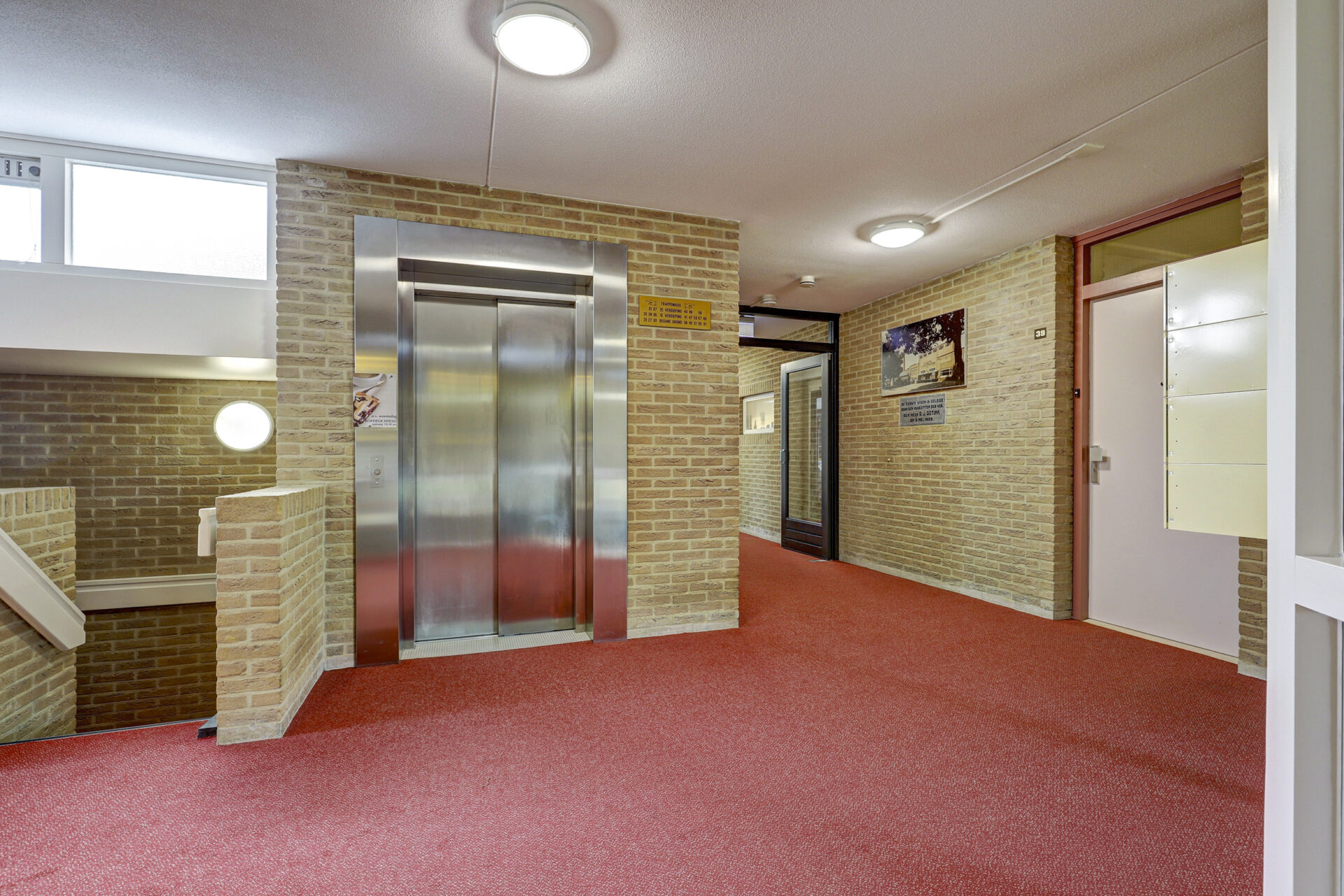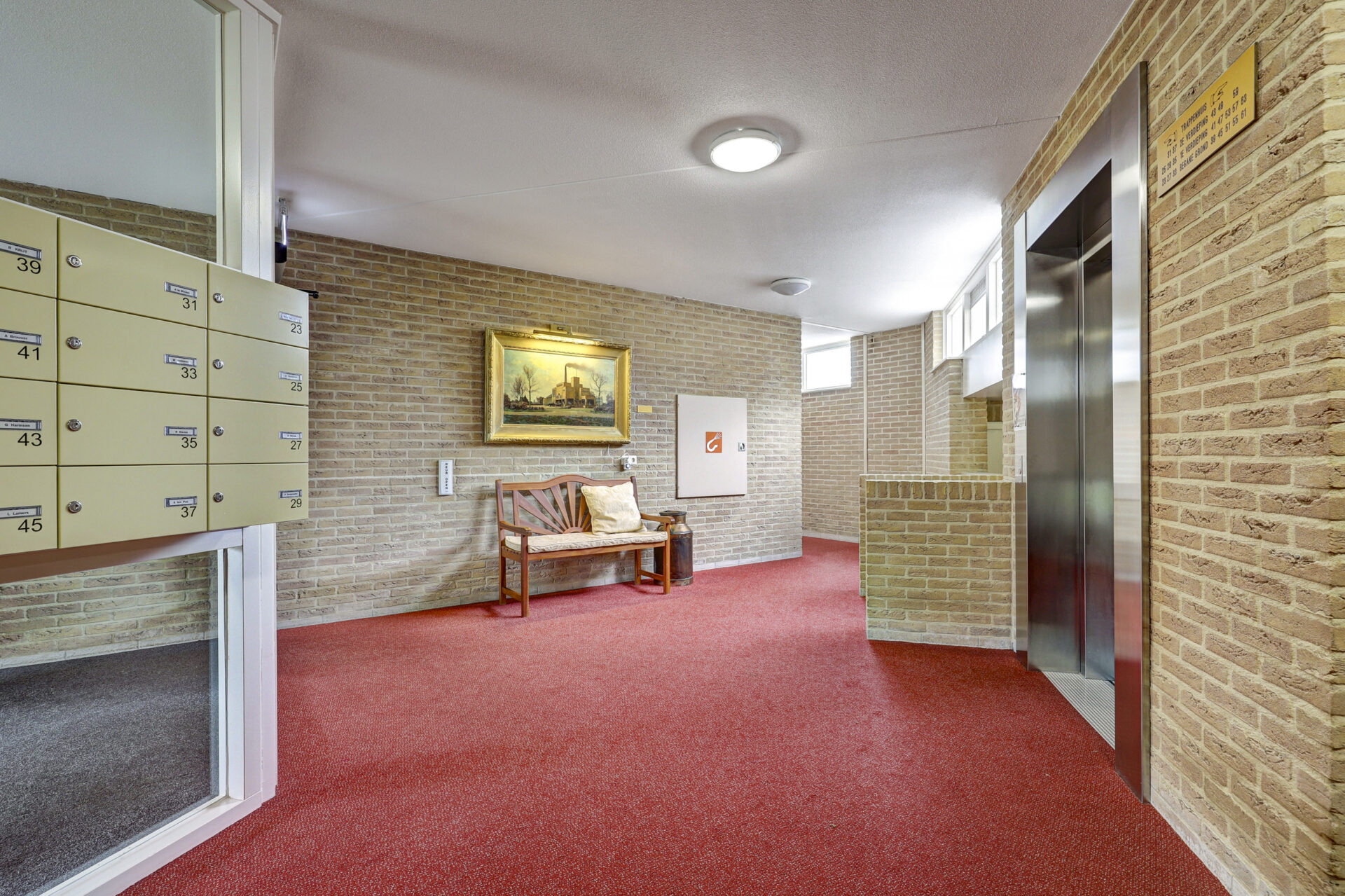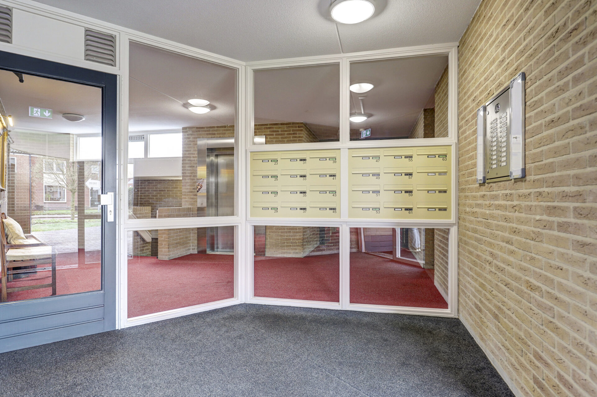 Centrale entree, voorzien van een beltableau, videofoon en brievenbussen. De ontvangsthal biedt toegang tot het trappenhuis, de lift en de gemeenschappelijke ruimte. Via een ruime gang bereikt u de voordeur van het appartement.