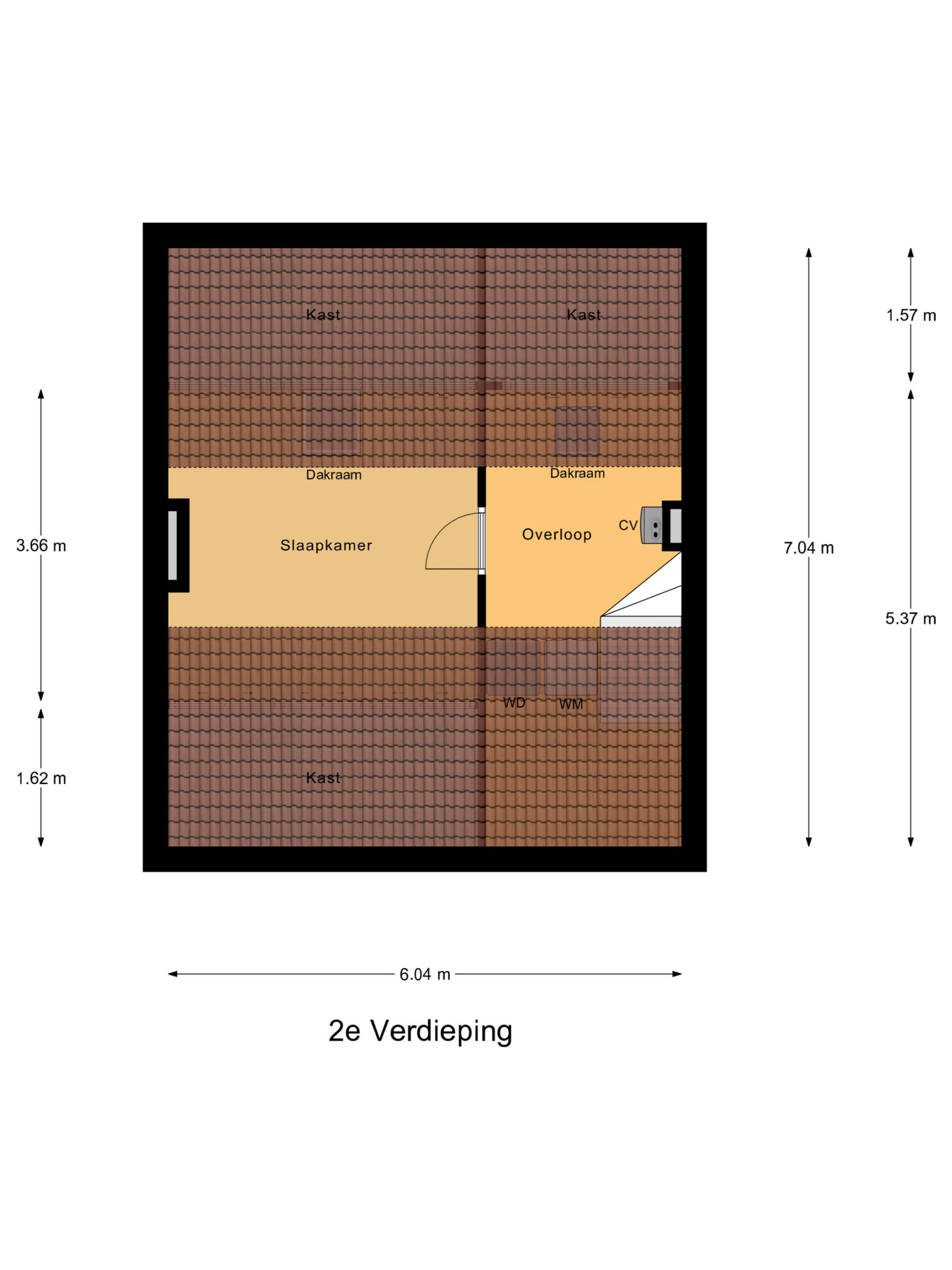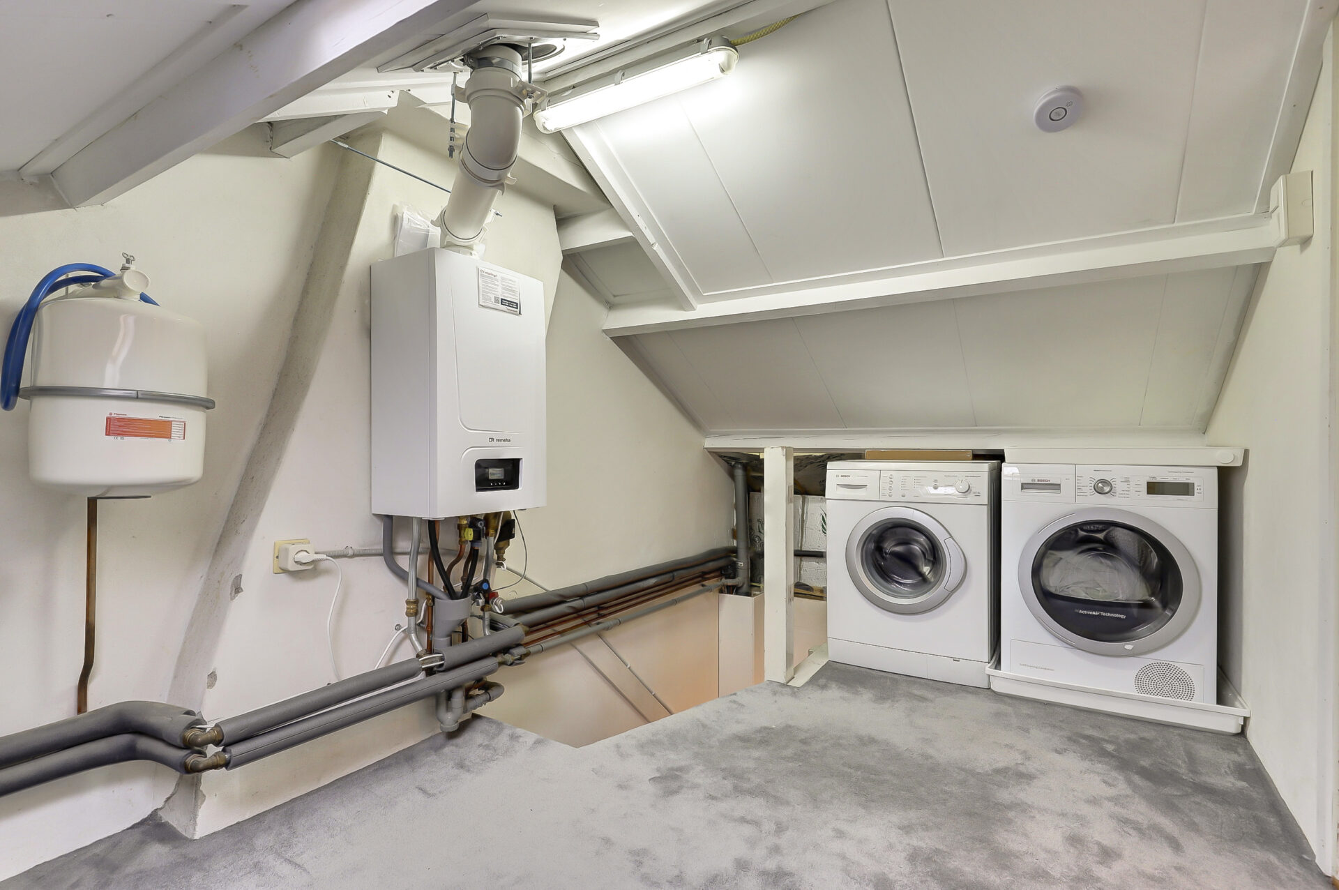 Tweede verdieping: Via een vaste trap bereik je de voorzolder met wasmachine aansluiting en de opstelplaats voor de CV-combiketel (2023). Praktische ruimte met groot dakraam welke prima te gebruiken is als slaapkamer of werkkamer.