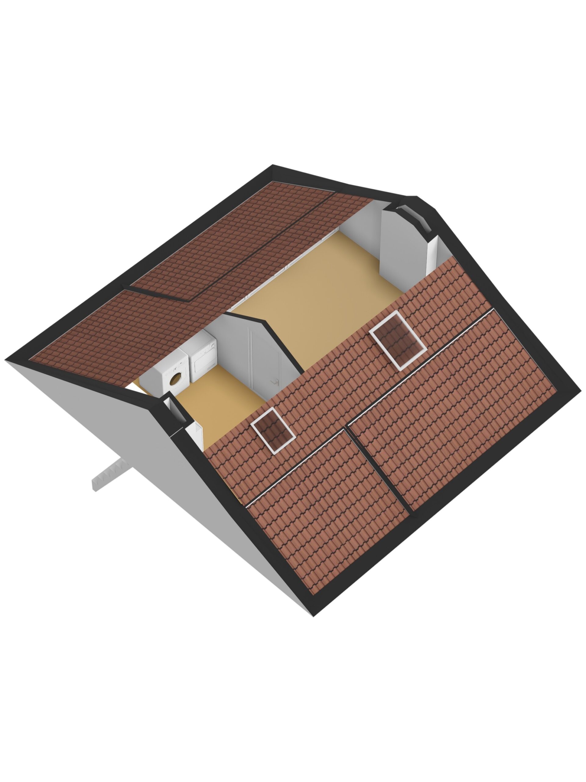 - Vaste trap naar zolderverdieping (geïsoleerde kap)