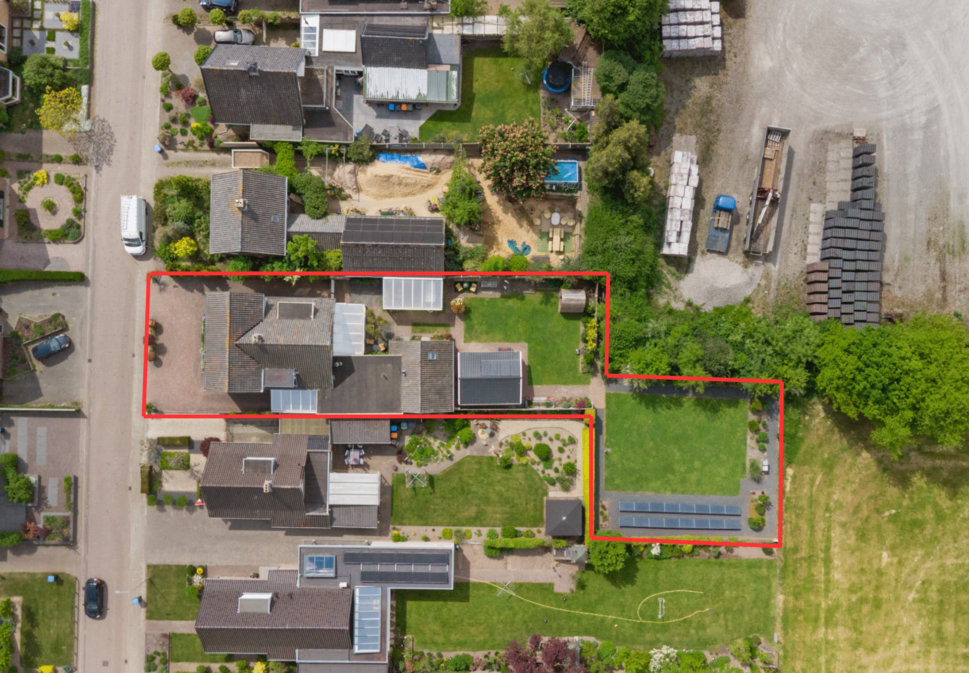 De woning beschikt over een royale garage met automatische deur, carport en 20 zonnepanelen – een duurzame keuze die zorgt voor lage energielasten. Alles is keurig onderhouden en netjes verzorgd.