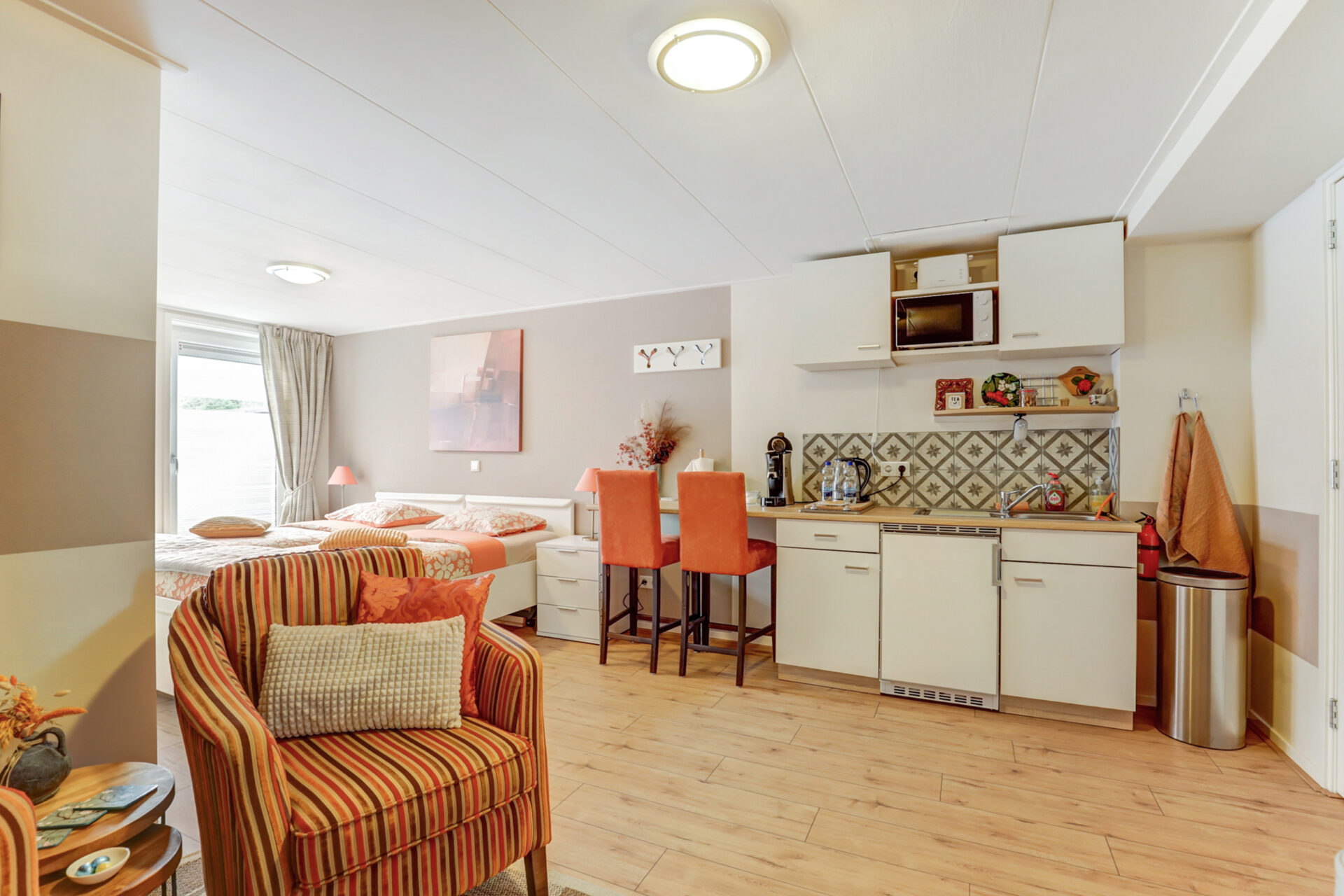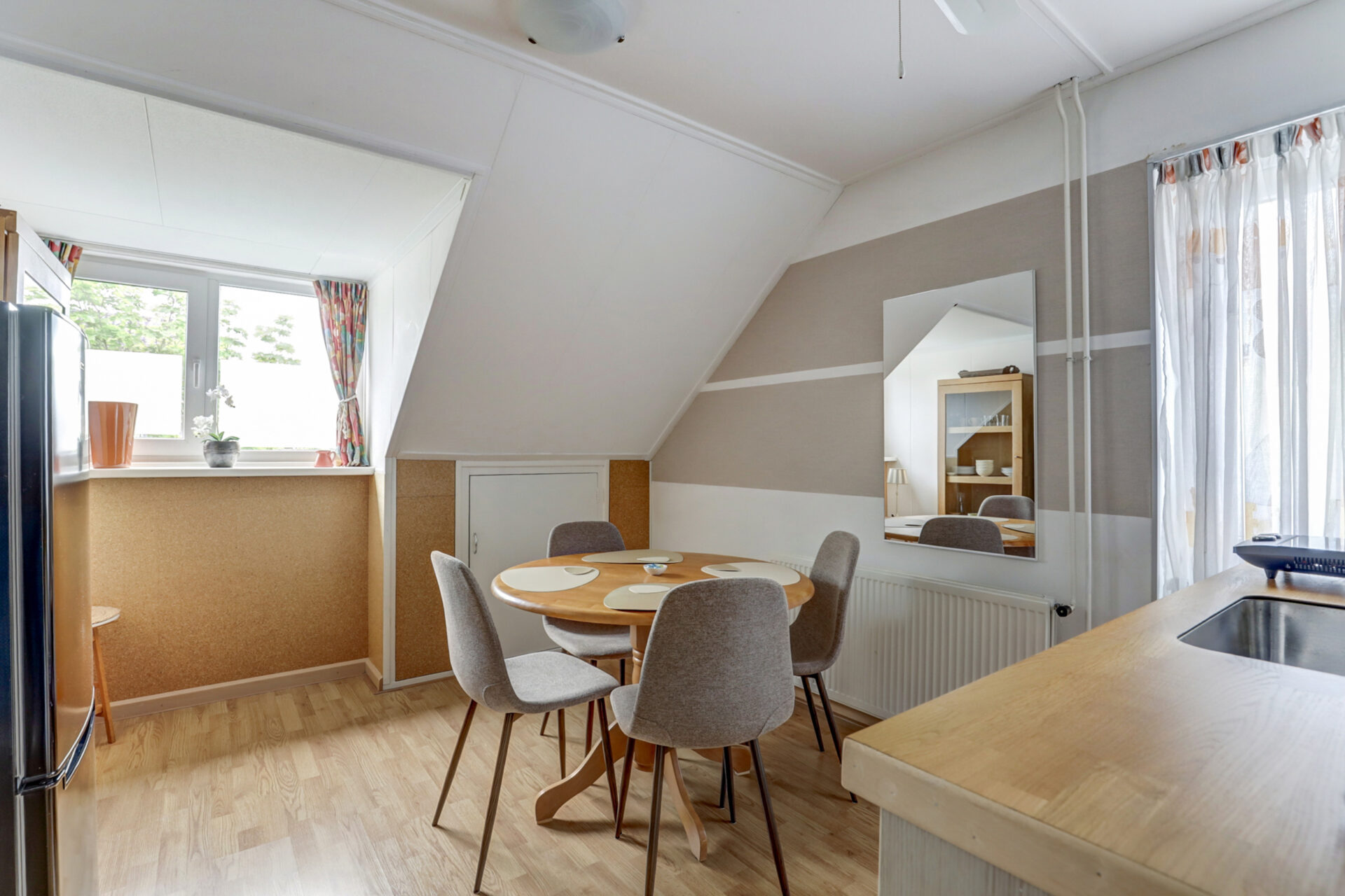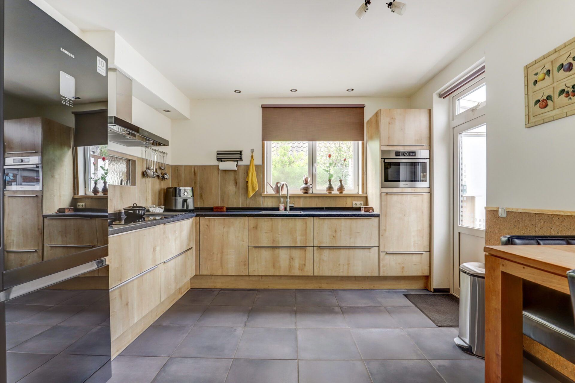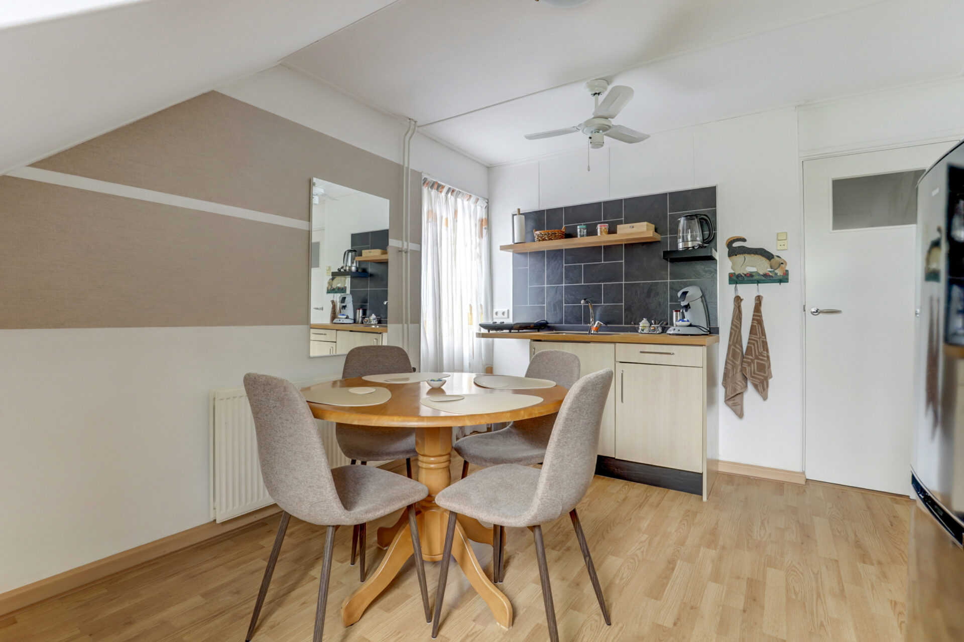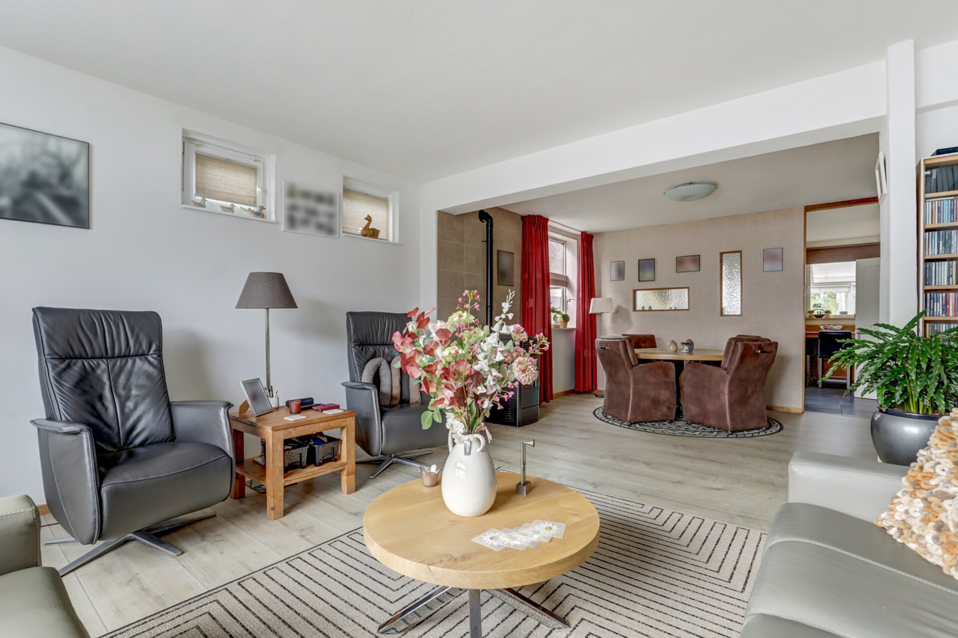 De gezellige woonkamer met pelletkachel vormt het hart van het huis – een fijne plek om samen te komen en te ontspannen. De afgesloten keuken, is in 2018 vernieuwd en voorzien van een moderne inrichting en gebruikelijke inbouwapparatuur. Vanuit de keuken is er direct toegang tot de tuinkamer (serre). Vanuit hier kijkt u prachtig uit over de diepe, fraai aangelegde tuinen en besloten terras. Aparte terrasoverkapping die geheel af te sluiten is in de koele maanden of open te zetten als het zonnetje schijn. De tuin is grotendeels een gazon met borders. De Sauna is een welkome aanvulling om lekker te ontspannen. Een deel van de achtertuin is ingericht met een 20-tal zonnepanelen.