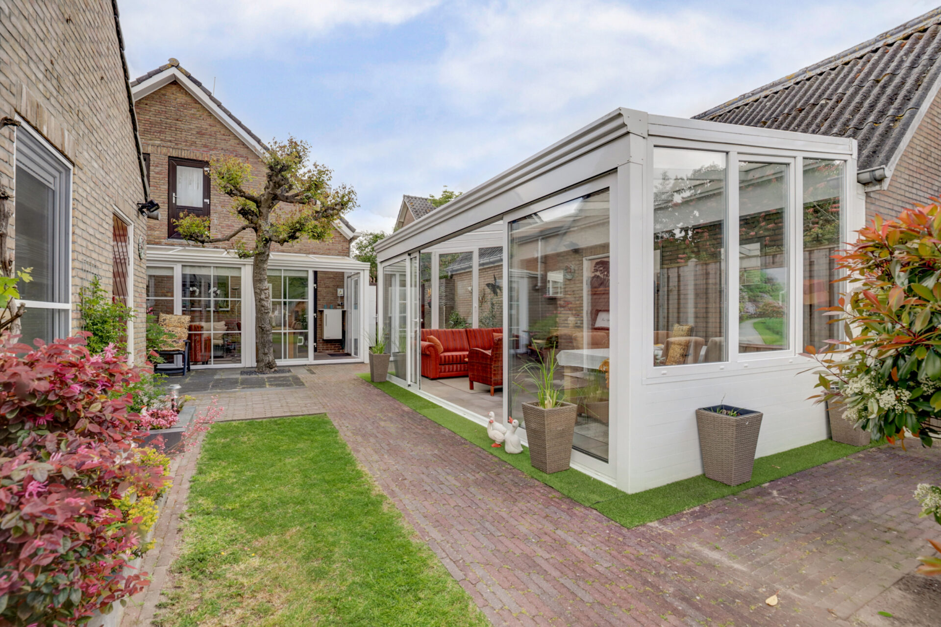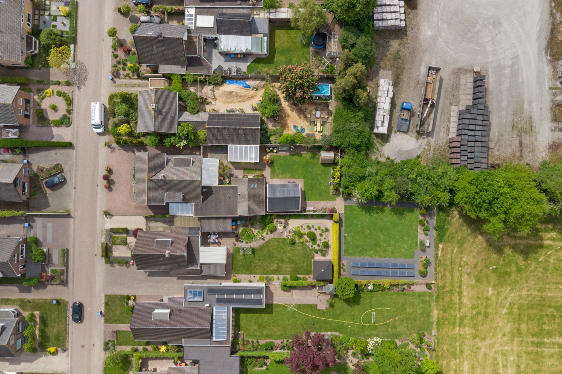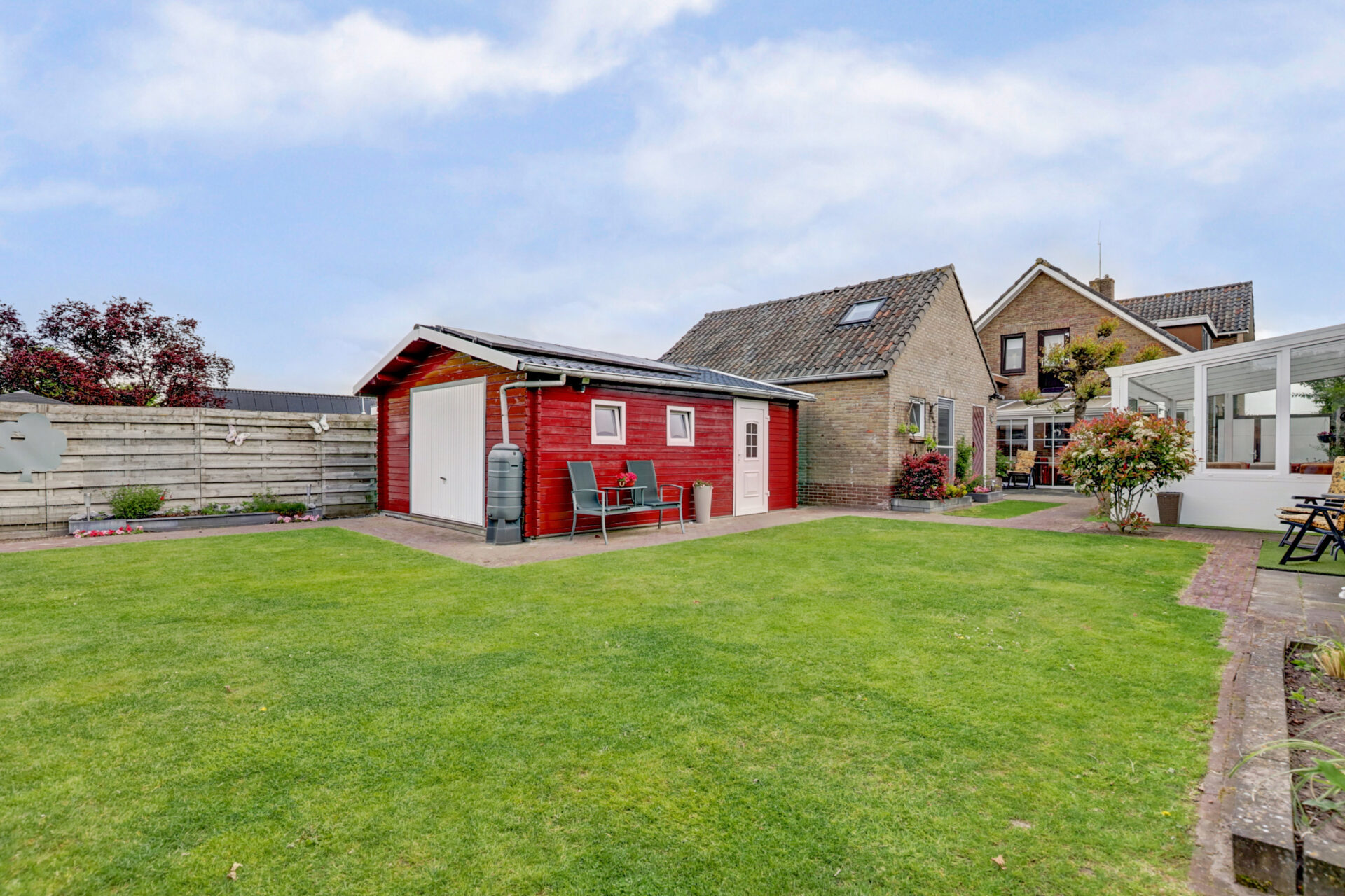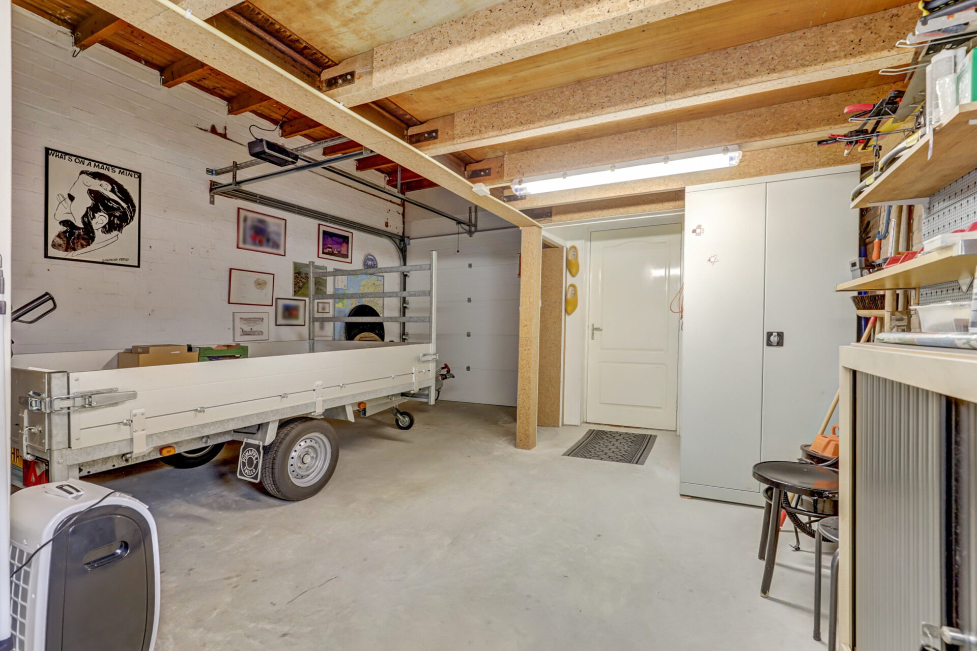 De woning beschikt over een royale garage met automatische deur, carport en 20 zonnepanelen – een duurzame keuze die zorgt voor lage energielasten. Alles is keurig onderhouden en netjes verzorgd.