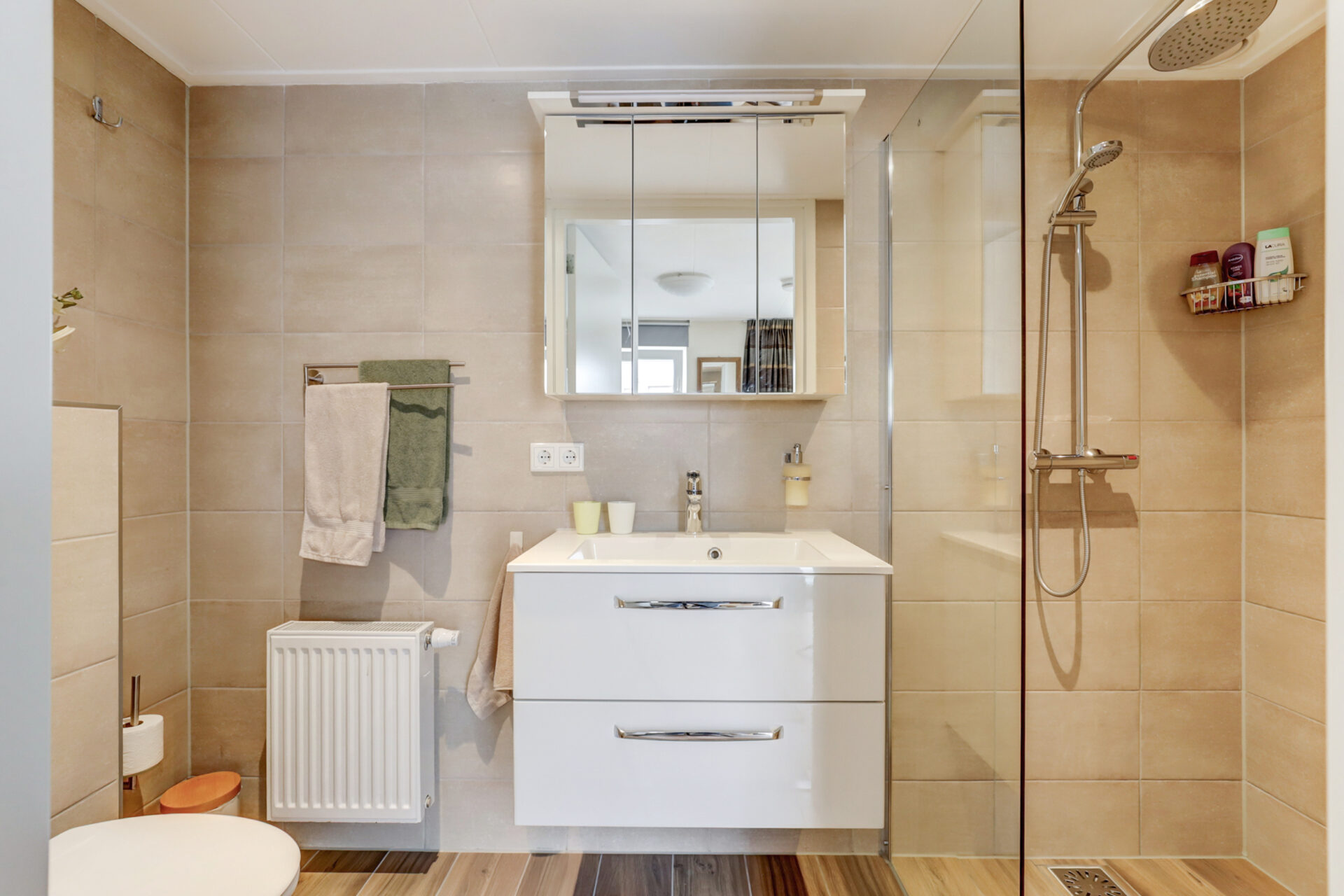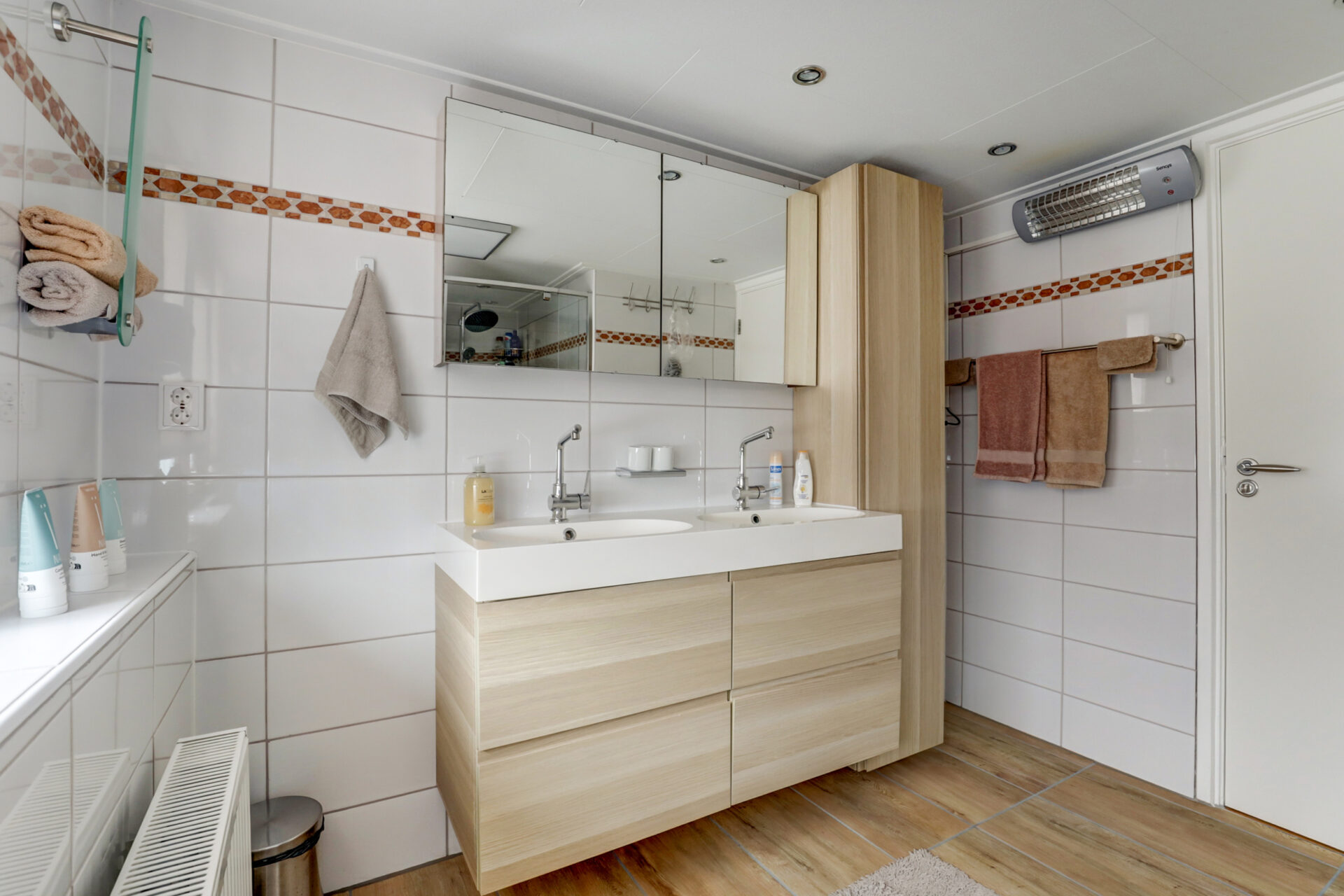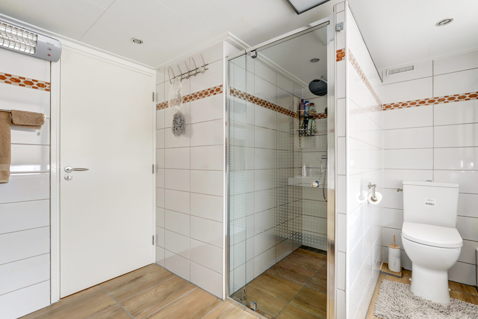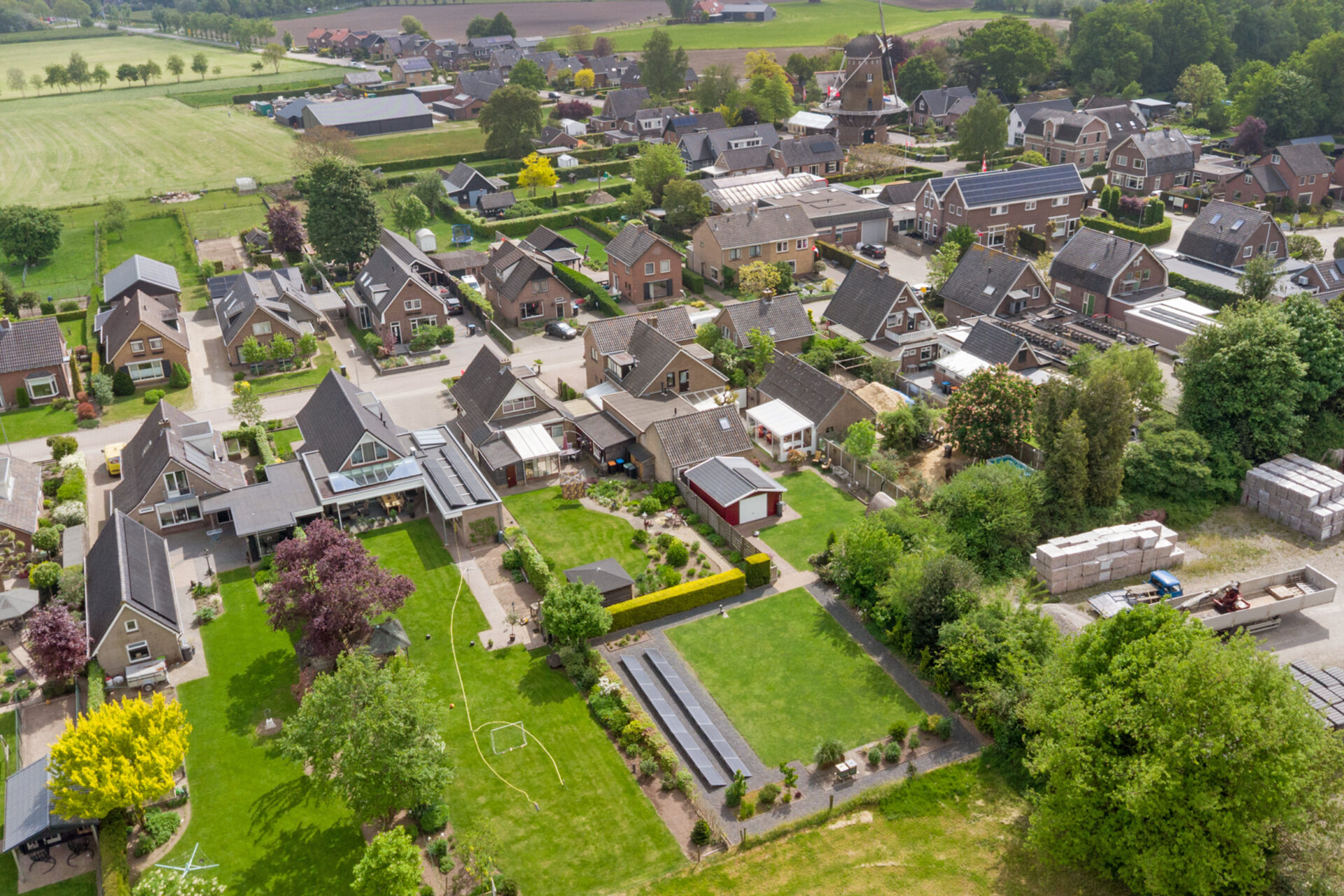 De woning beschikt over een royale garage met automatische deur, carport en 20 zonnepanelen – een duurzame keuze die zorgt voor lage energielasten. Alles is keurig onderhouden en netjes verzorgd.